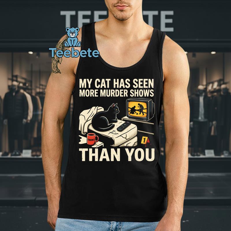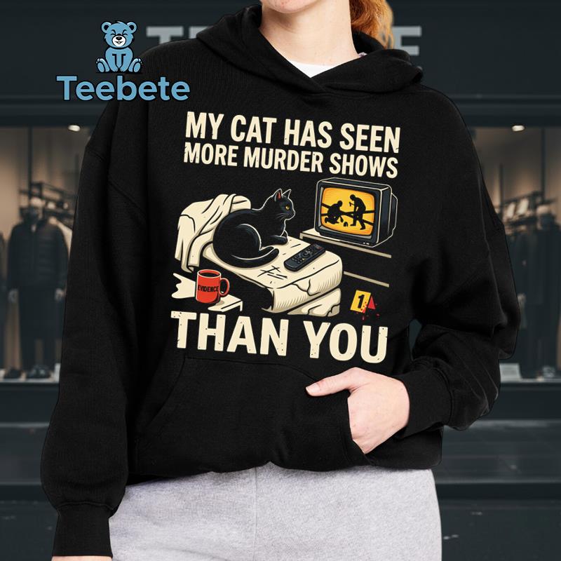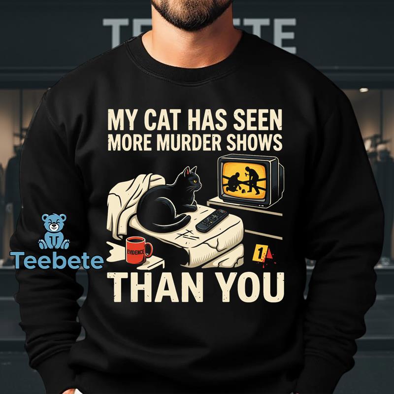 Whimsical illustrations of cunning felines, embroiled in their favorite crime noir narratives, adorn this T-Shirt, making it a delightful choice for fans of both cats and true crime. The “My Cat Has Seen More Murder Shows Than You Shirt Funny True Crime Cat Lover Gift” showcases a humorous graphic composition that blends playful typography with fun cat imagery. The rich color palette brings together deep blacks and vibrant accents, enhancing the visual storytelling in every stitch. A clean layout ensures the playful design commands attention, making it a standout piece for casual wear.