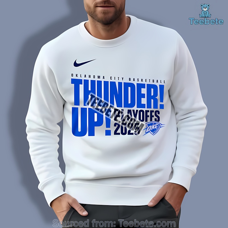 Show your unwavering loyalty with this Nba Playoffs Thunder Up Oklahoma City 2025 Basketball Shirt Idea from Teebete. Inspired by the electrifying energy of the Oklahoma City Thunder’s playoff push in 2025 (a season we’re already predicting will be legendary!), this design captures the raw passion and unwavering spirit of the fans.