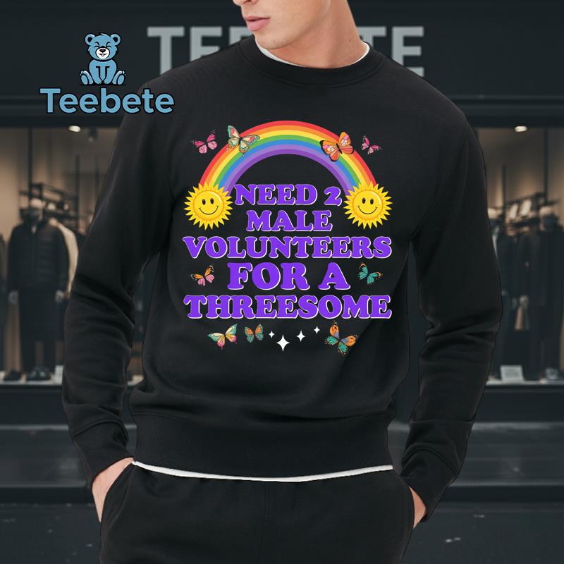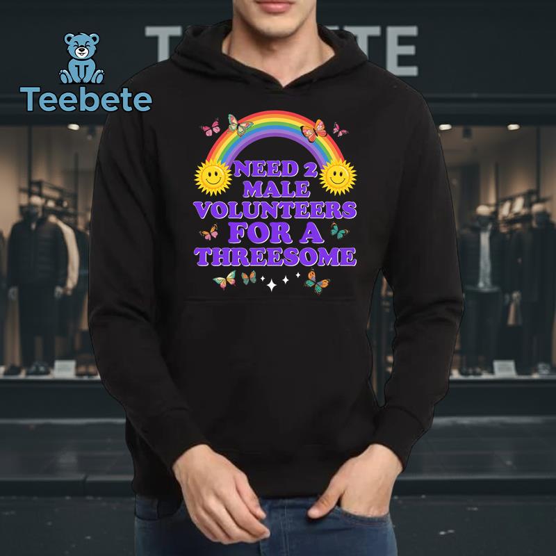 Graphic elements burst forth on this T-Shirt, presenting an engaging and humorous take with the “Need 2 Male Volunteers For A Threesome” design. This playful artwork employs a clever arrangement of bold typography and cheeky graphics to catch the eye, making it an unforgettable piece. The color palette balances bright hues with sharp contrasts, allowing the hilarious message to stand out prominently. Surrounded by a lighthearted vibe, this Threesome Joke Humor T-Shirt is a perfect conversation starter.