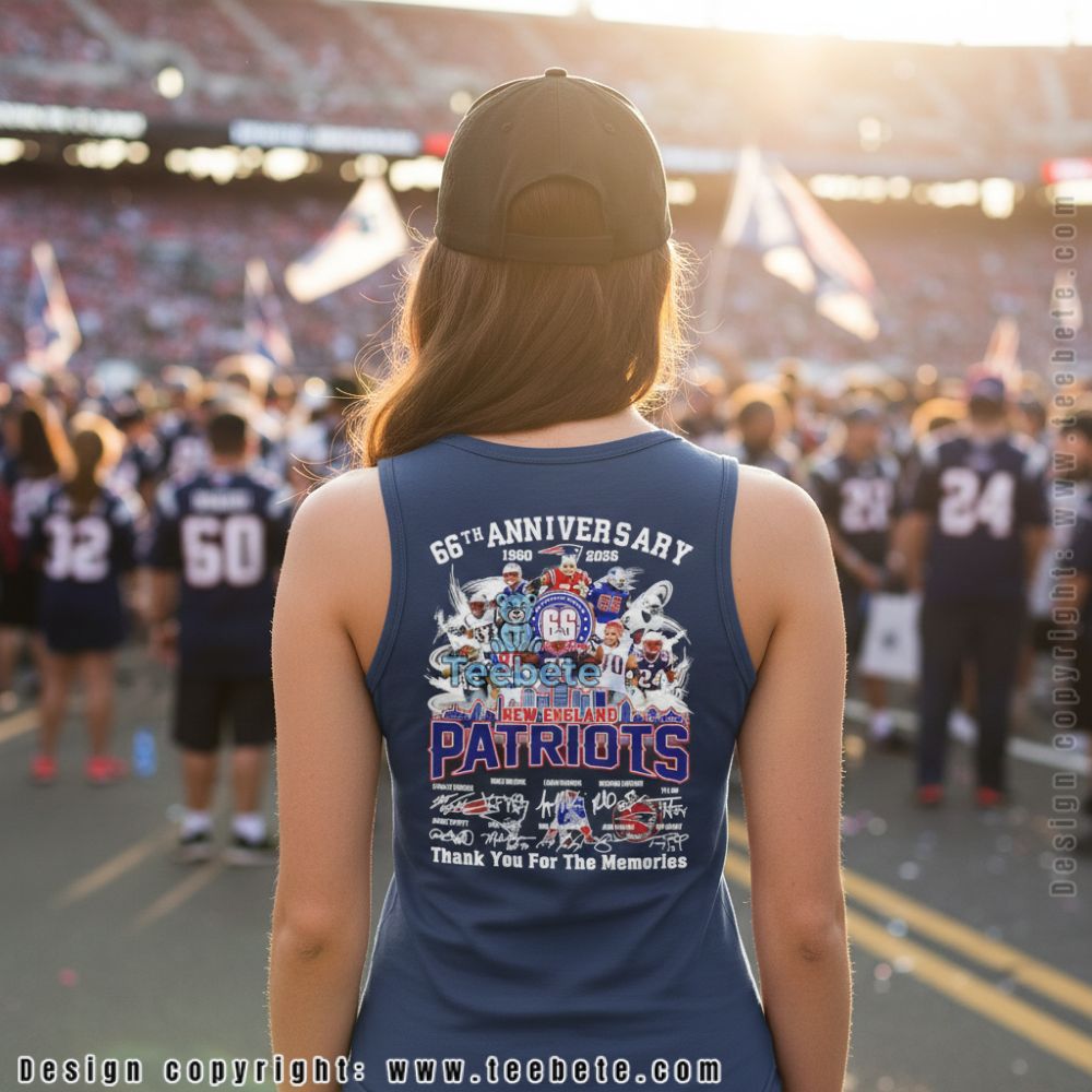 - Tank Top selections let you celebrate Patriots history during summer workouts or backyard BBQs, while each style variation maintains the integrity of the 66th anniversary design with professional-grade printing that ensures every signature and jersey number remains crisp.