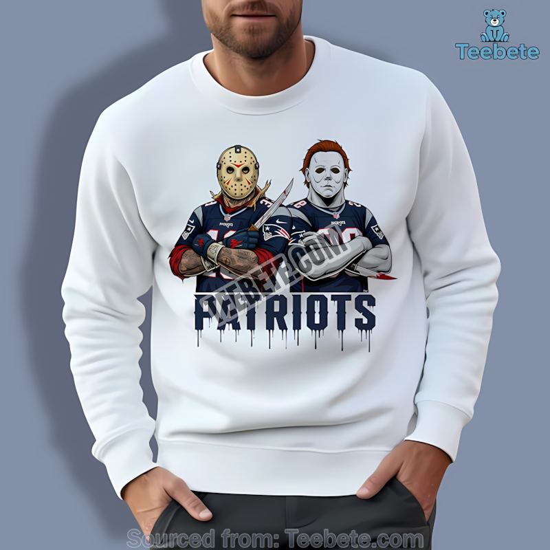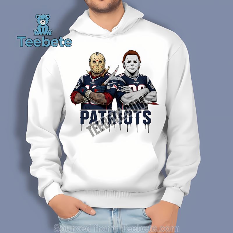 Don’t miss the chance to blend your fandoms in style. Elevate your wardrobe today with the New England Patriots Jason Voorhees Michael Myers Horror Shirt from Teebete—your new favorite piece of NFL horror character shirt apparel. Order yours now and get ready to be the talk of the season!