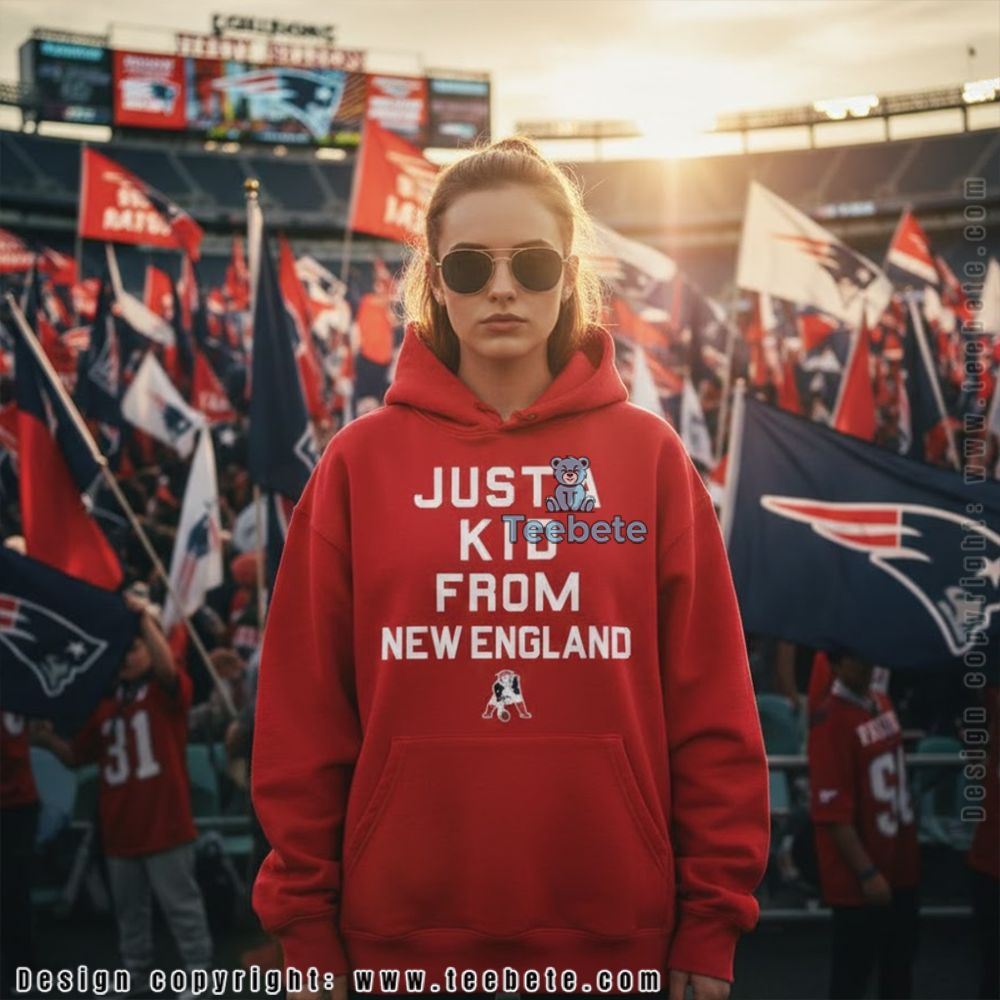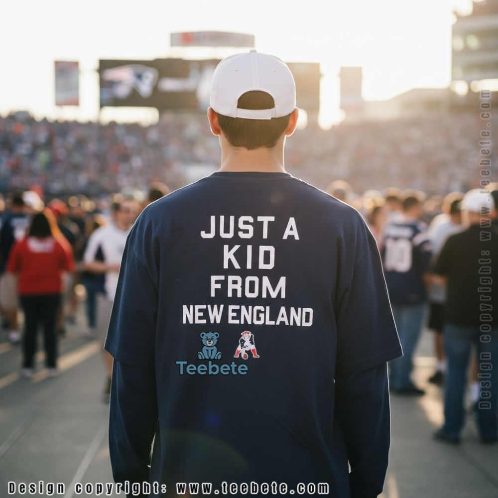 Represent your New England roots with undeniable pride in the New England Patriots Just A Kid From New England Shirt, a hometown tribute that celebrates regional loyalty and championship culture, now available at Teebete. This authentic design is available in multiple styles including a classic Crewneck T-shirt for everyday wear, a warm Hoodie for cold New England winters, a comfortable Sweatshirt for weekend outings, a V-Neck option for casual gatherings, Long Sleeve versions for fall weather, and Tank Tops for summer days—each style preserving the bold white typography and Pat Patriot graphic with crisp clarity.
