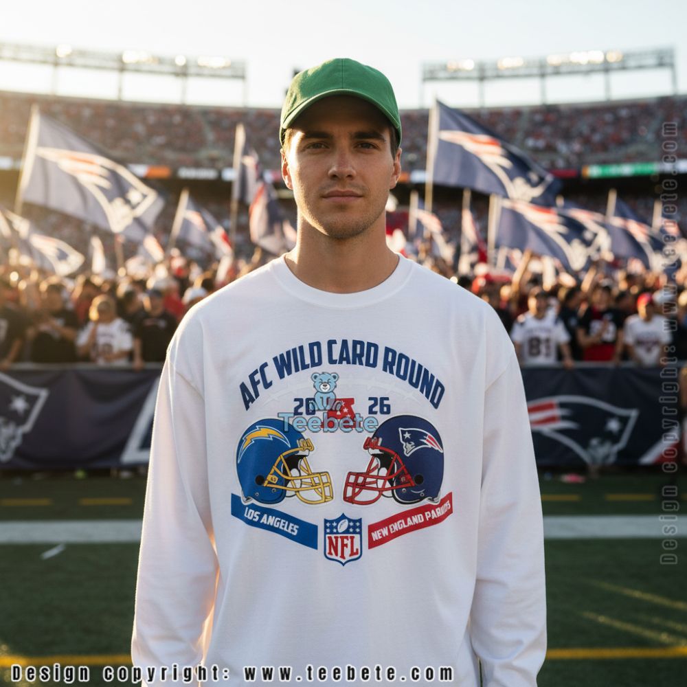 Commemorate a crucial playoff showdown with the New England Patriots Vs Los Angeles AFC Wild Card Round 2026 Shirt, an official matchup design that captures the intensity of postseason football when the Patriots face off against LA, now available at Teebete. This commemorative design is available in multiple styles including a classic Crewneck T-shirt for game day viewing, a warm Hoodie for January stadium weather, a comfortable Sweatshirt for playoff parties, a V-Neck option for casual wear, Long Sleeve versions for winter layering, and Tank Tops for indoor celebrations—each style preserving the helmet graphics and playoff branding with authentic detail.