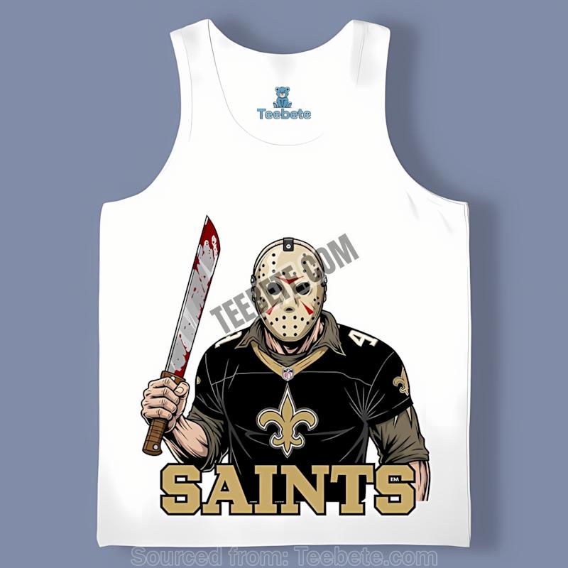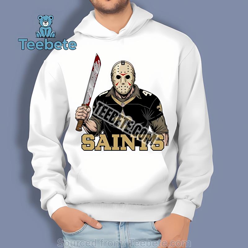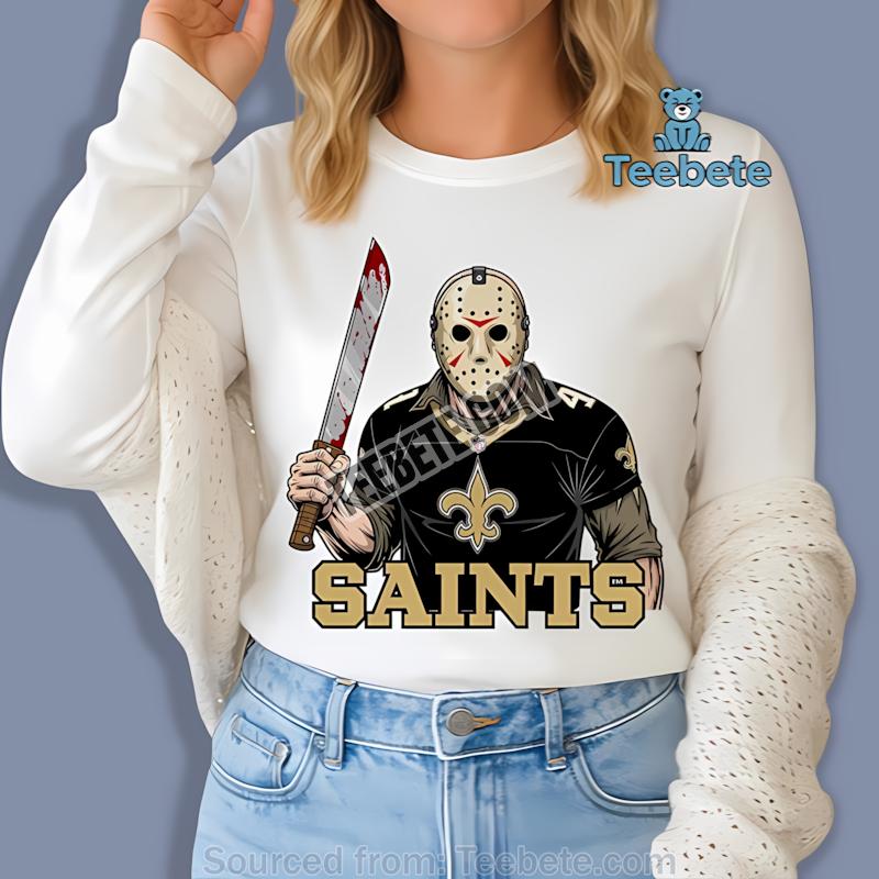 Don’t miss out on this unique blend of fandom and fright. Click to buy the New Orleans Saints Jason Voorhees Machete Football Shirt now and show off your love for the Saints with a hint of horror flair!