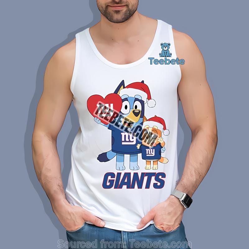 Step into the festive spirit this season with a stunning piece of apparel that brilliantly merges the world of sports with heartwarming pop culture. Inspired by the beloved characters Bluey and Bingo, this unique design of the New York Giants Bluey And Bingo Christmas Heart Shirt captures the joy of family and the excitement of NFL fandom. It’s a celebration of togetherness, a tribute to the Giants, and a delightful nod to the animated adventure that has captured hearts across generations.