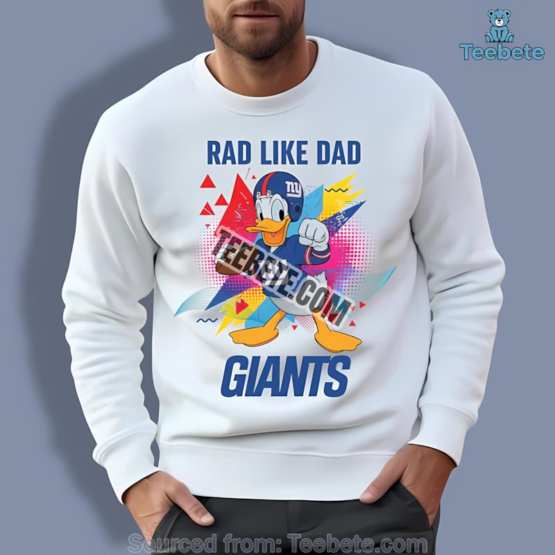 Don’t miss out on the opportunity to show off your team spirit in style while celebrating fatherhood. Grab the New York Giants Donald Duck Rad Like Dad Shirt today and make every moment a good one with Teebete!