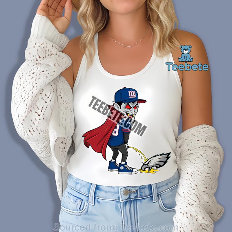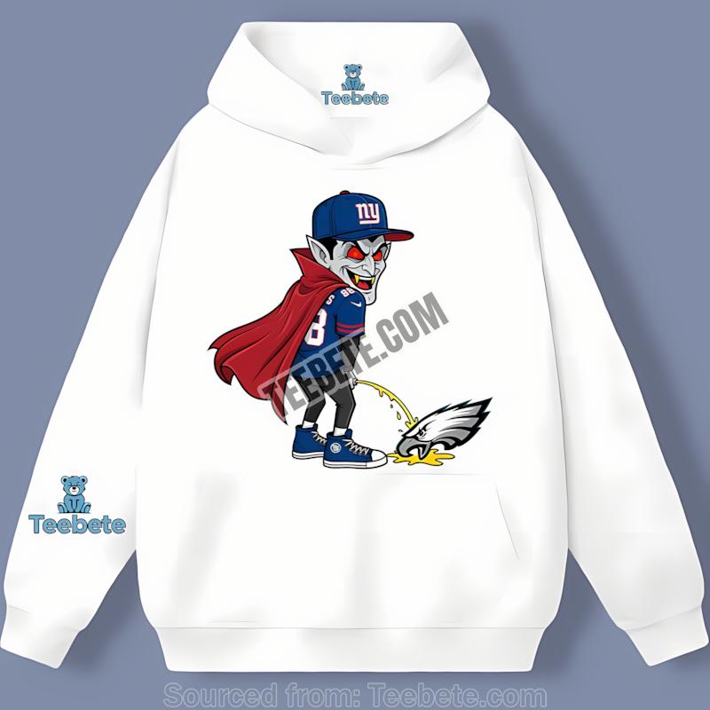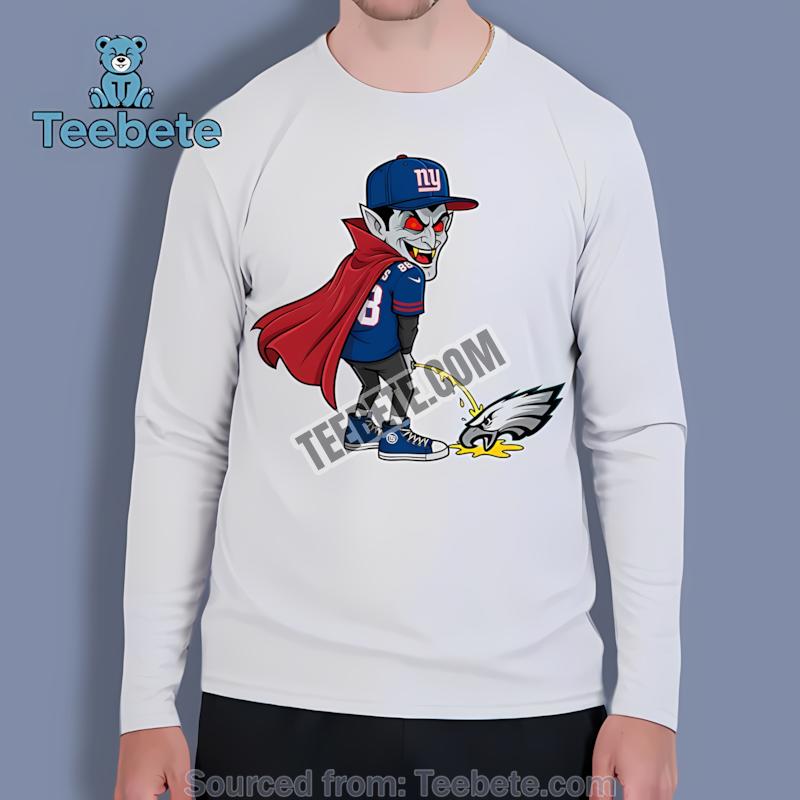 Join the ranks of enthusiastic fans who celebrate both Halloween and their team’s fiery competition. Elevate your game day and holiday wardrobe with this unique design. Don’t miss out—purchase the New York Giants Dracula Eagles Rivalry Halloween Shirt from Teebete now!