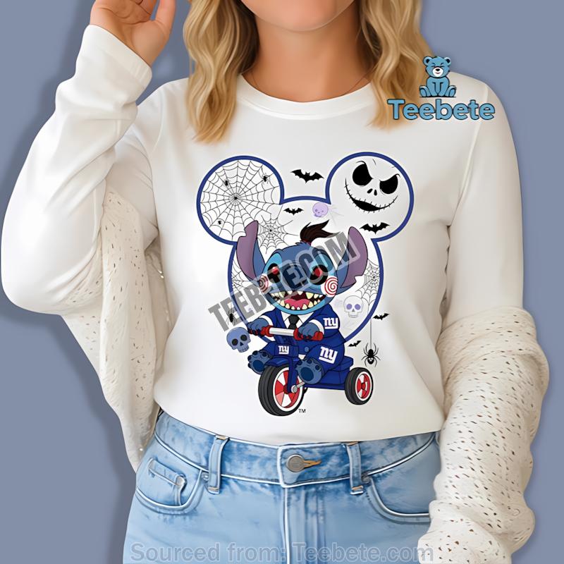 Emphasizing the Giants scary stitch shirt theme, this piece features a unique graphic melding the iconic Giants logo with a spine-chilling twist, making it a conversation starter. Perfect for both spirited game days and spooktacular nights, it transitions effortlessly from the stands to the streets.