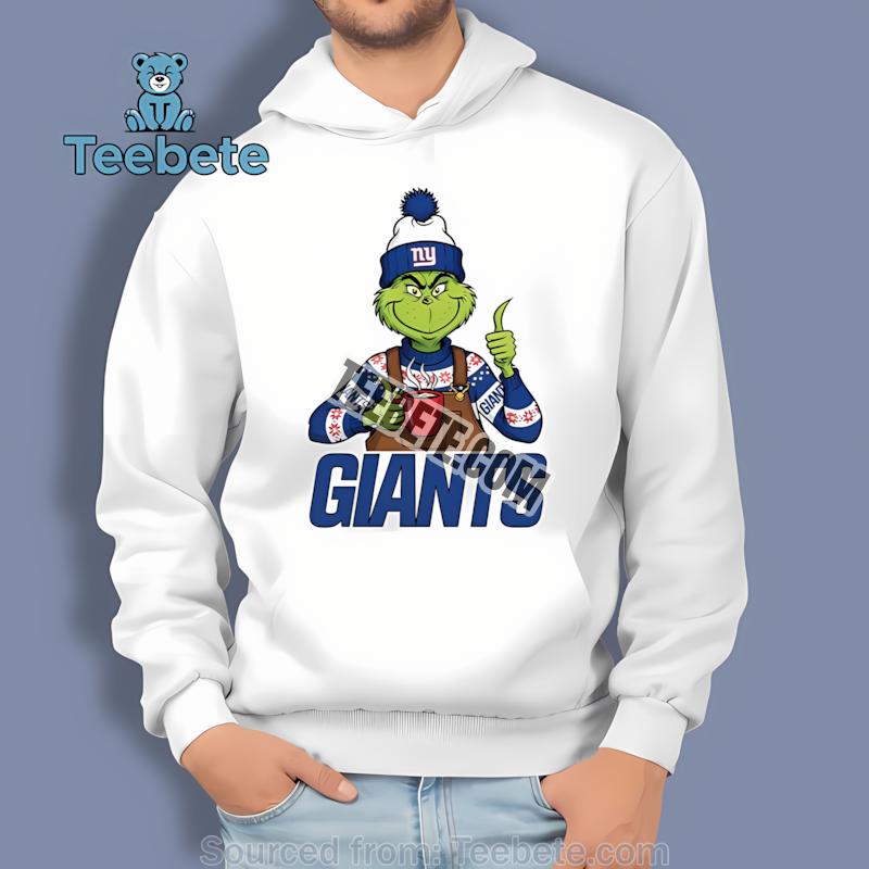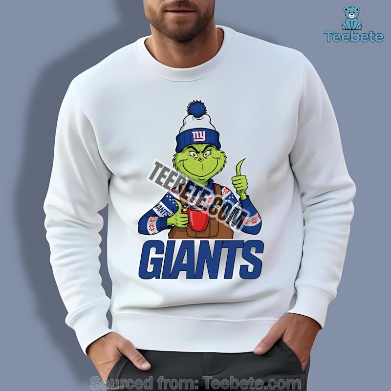 Crafted from high-quality cotton, this shirt offers unparalleled comfort and softness. The breathable fabric ensures that you stay cozy while cheering on the Giants, making it an essential addition to your winter wardrobe. With its vibrant print clarity, the artwork of the Grinch enjoying a cup of hot cocoa alongside the iconic Giants logo stands out, promising to turn heads wherever you go. It’s a perfect fusion of New York Giants Christmas apparel that keeps you stylish during festive events and game days alike.