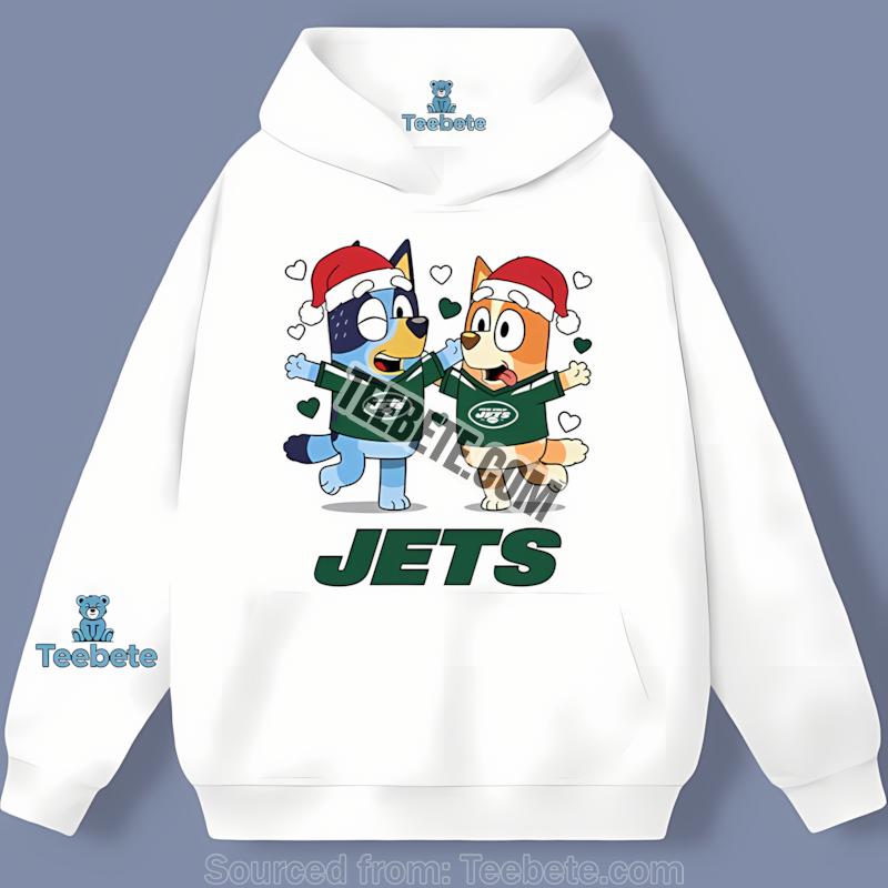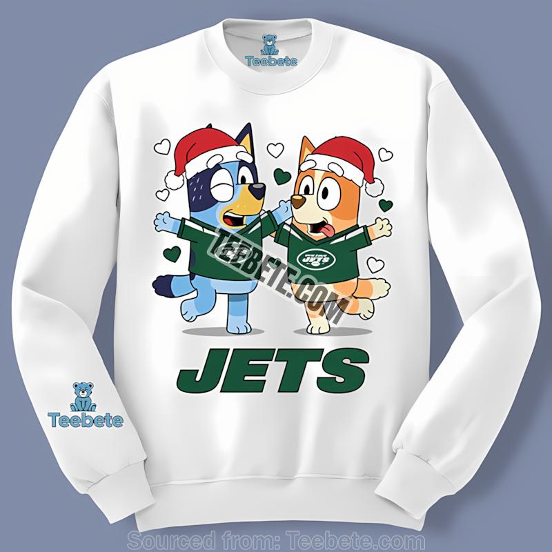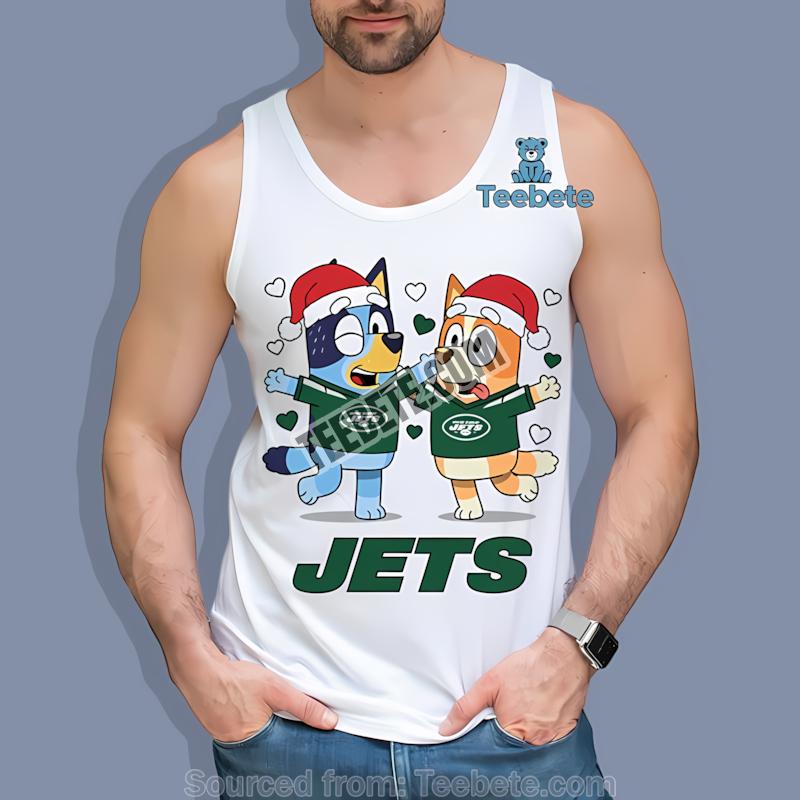 Don’t miss out on the chance to make this holiday season memorable. Elevate your festive wardrobe and spread the cheer of the season with the New York Jets Bluey And Bingo Christmas Dancing Shirt. Add this unique piece to your cart today, and lead the charge into a joyful, spirited holiday celebration with Teebete!