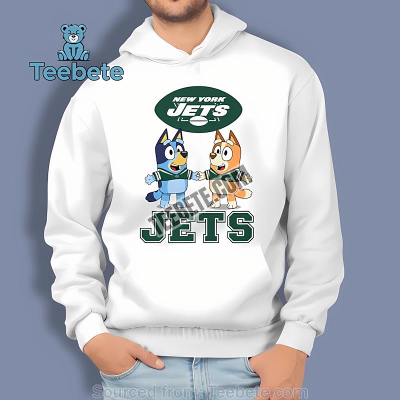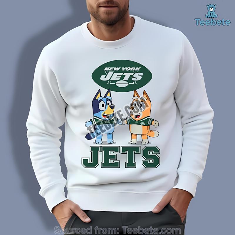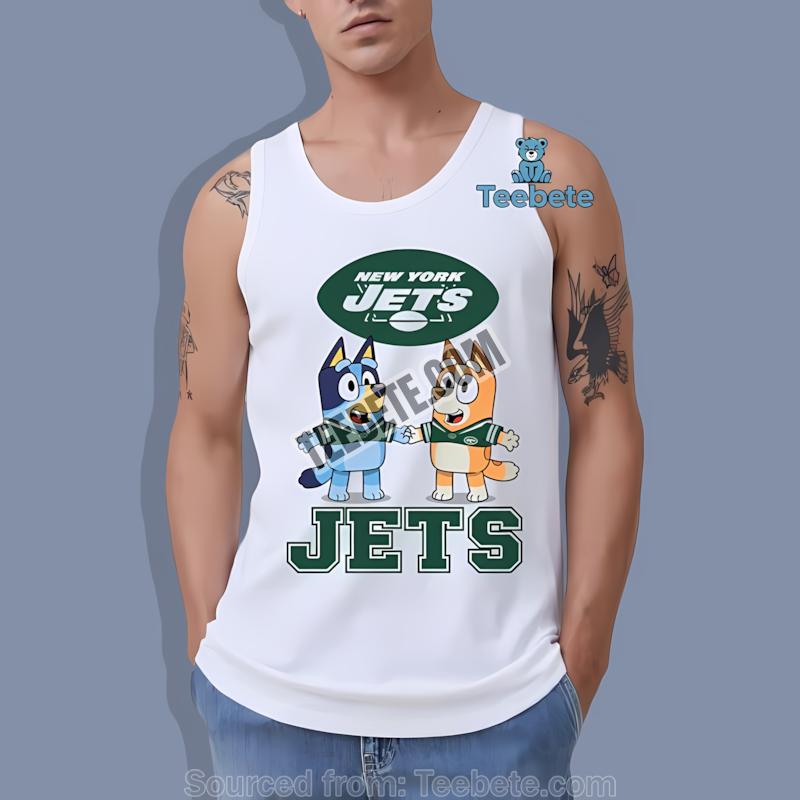 Don’t miss out on this opportunity to embrace your Jets spirit alongside the magic of Bluey. Purchase the New York Jets Bluey And Bingo Holding Hands Shirt now to celebrate the game and create unforgettable moments!
