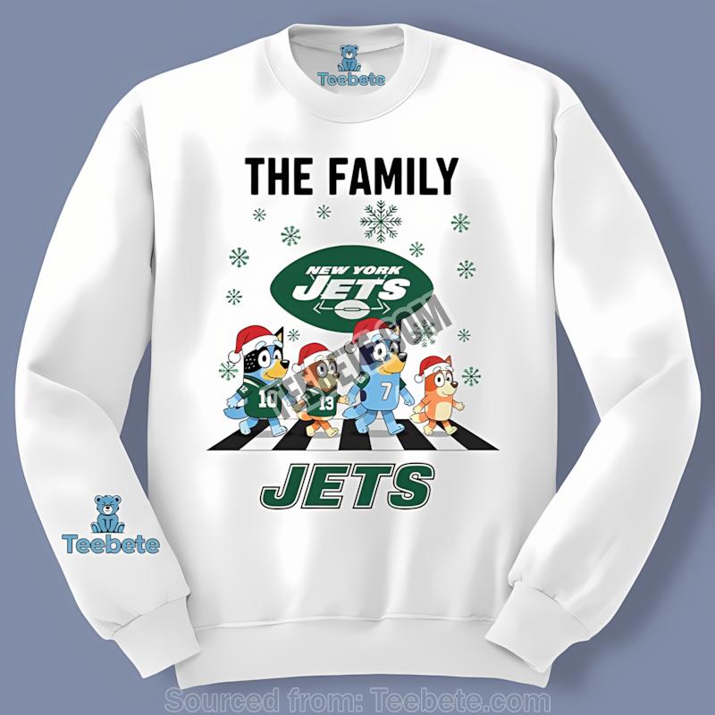 Crafted with 100% soft cotton, the New York Jets family Christmas shirt guarantees comfort without compromising on quality. Enjoy the luxurious feel against your skin, perfect for both cheering at the game or cozying up by the fire. The high-resolution prints display intricate snowflake designs and the iconic team colors with excellent durability, ensuring your festive Bluey New York Jets holiday apparel remains vibrant wash after wash. Whether you’re young or old, the inviting texture of this shirt makes it an ideal choice for family gatherings during the holiday season.