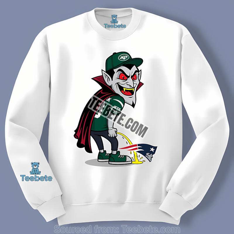 Don’t miss out on this unique crossover between sports and Halloween fun. Make a statement this season with NFL Jets vs Patriots costume shirt from Teebete, and show your team pride while embracing the spooky season. Add the New York Jets Dracula Patriots Rivalry Halloween Shirt to your cart today and gear up for unforgettable moments!