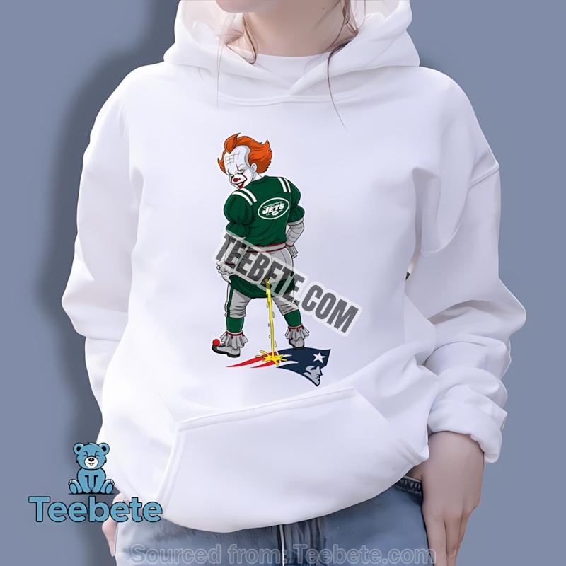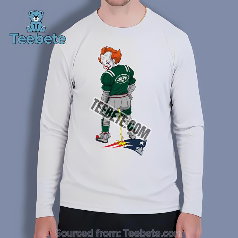 Don’t miss your chance to own this iconic piece of Jets vs Patriots rivalry gear. Order the New York Jets Halloween Pennywise Patriots Rivalry Shirt from Teebete today and let your love for the Jets shine this Halloween season!