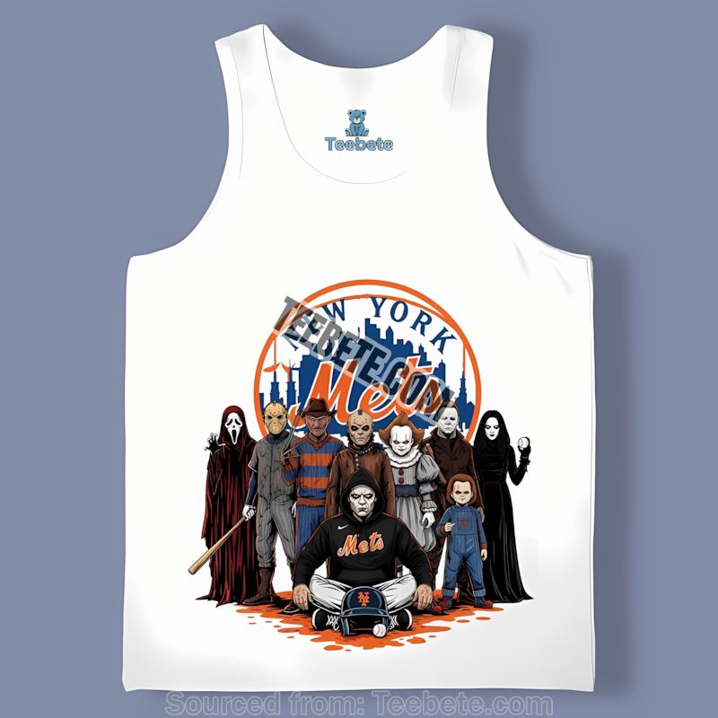 The high-quality print is what truly sets this New York Mets characters shirt apart. Our advanced printing techniques ensure that the vivid colors of your favorite Mets players transformed into iconic horror characters remain bold and crisp, even after multiple washes. Each detail, from the menacing grins to the subtle shadows, is meticulously recreated, ensuring a truly impressive and eye-catching design. This shirt is a conversation starter, a visual masterpiece that shows your unwavering support for the Mets and your appreciation for the macabre.