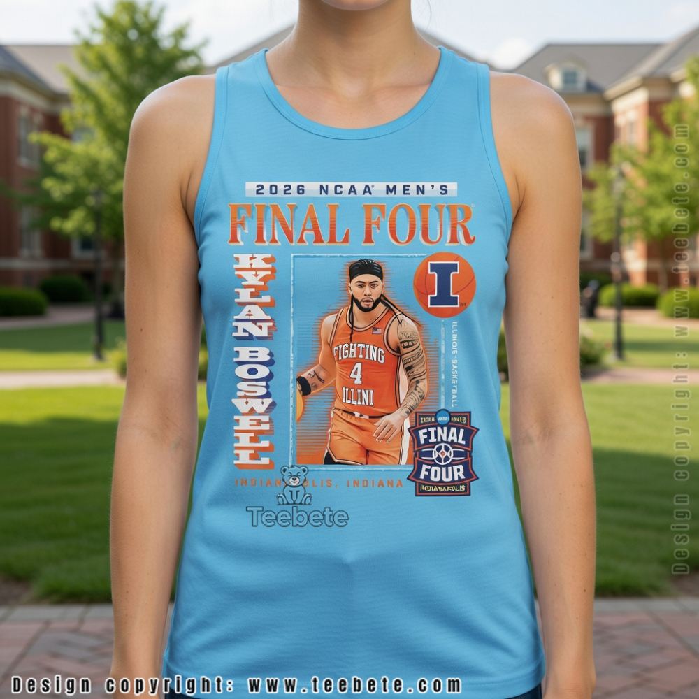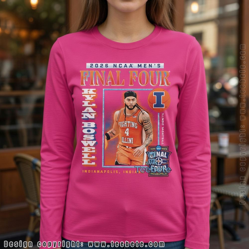 Bright orange and navy blue create a striking contrast in this T-Shirt, capturing the spirit of college basketball. Centered on the front of the Niccolo Moretti Illinois Illini 2026 Final Four T-Shirt is an attention-grabbing illustration that masterfully blends imagery associated with the Illinois Illini with stylish typography. The dynamic arrangement brings a sense of exhilaration and team pride, making it an ideal choice for game day gatherings. Each detail of the design is crafted to celebrate the school’s legacy while showcasing the Final Four excitement.