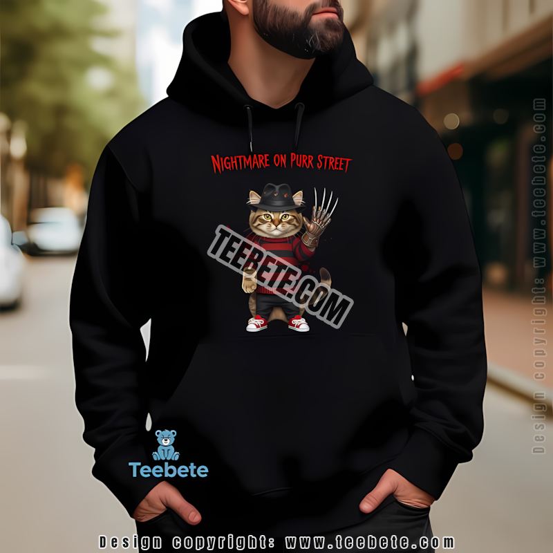 Get ready to pounce into the Halloween spirit with our charming yet frightful Nightmare On Purr Street Freddy Krueger Cat Halloween Shirt for Cat Lovers. This design captures that beloved blend of nostalgia and playful horror, celebrating the iconic Freddy Krueger in a feline twist. Whether you’re reminiscing over classic horror movies or simply looking to adorn yourself in something unique, this shirt evokes a sense of fan unity and joy that only a true cat lover can appreciate.