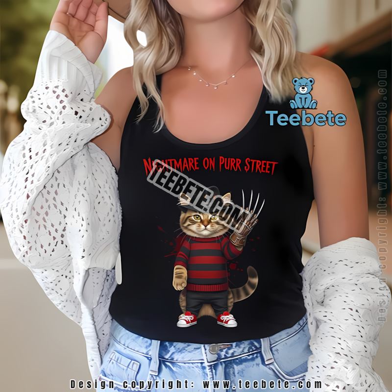 Embrace the Spook-tacular with Our Nightmare On Purr Street Freddy Krueger Cat Halloween Shirt for Cat Lovers