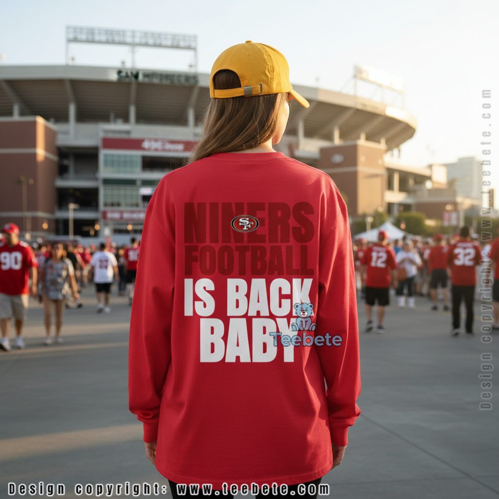 Celebrate your love for the game with the Niners Football Is Back Baby Shirt For Teen. This incredible tee perfectly encapsulates the joy of football season, making it a must-have for young fans eager to show their team pride. The excitement of game day is just a shirt away with this standout design.