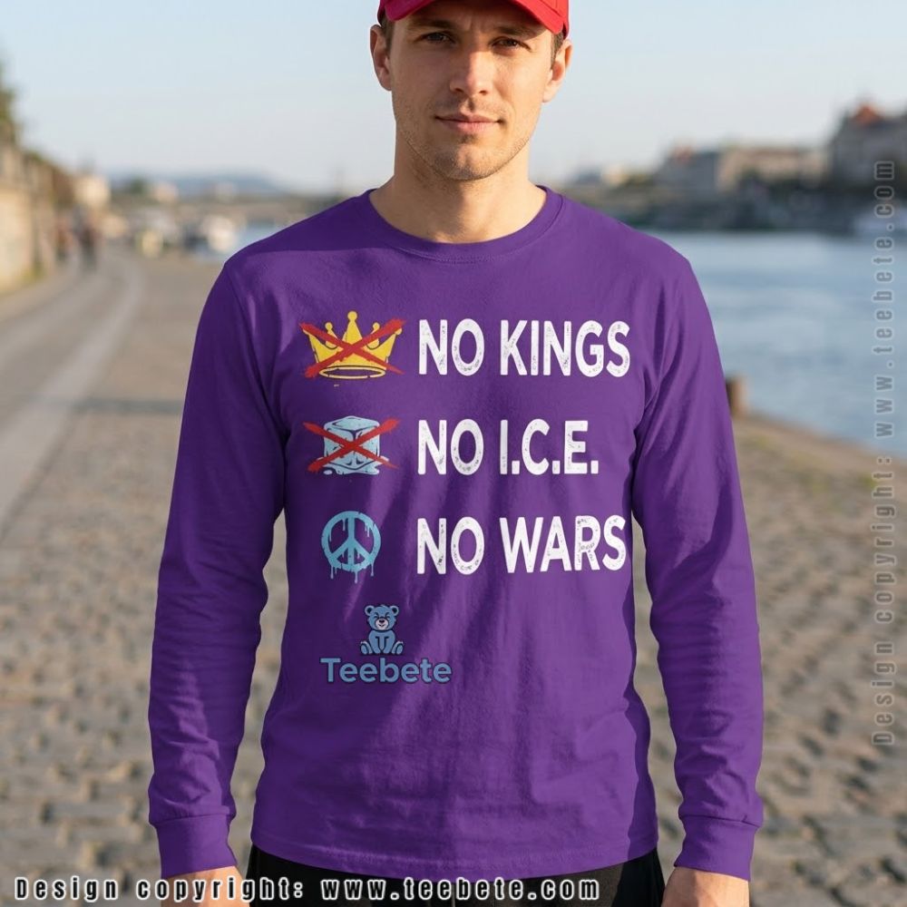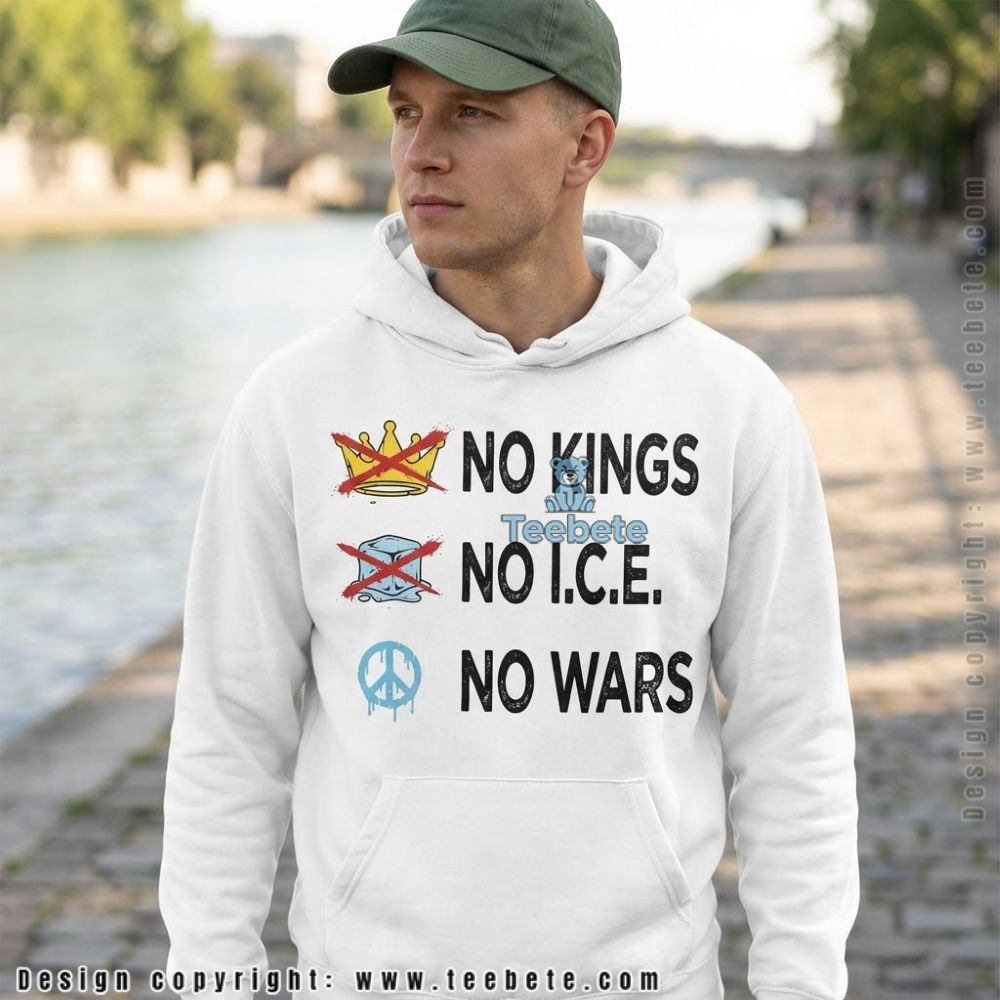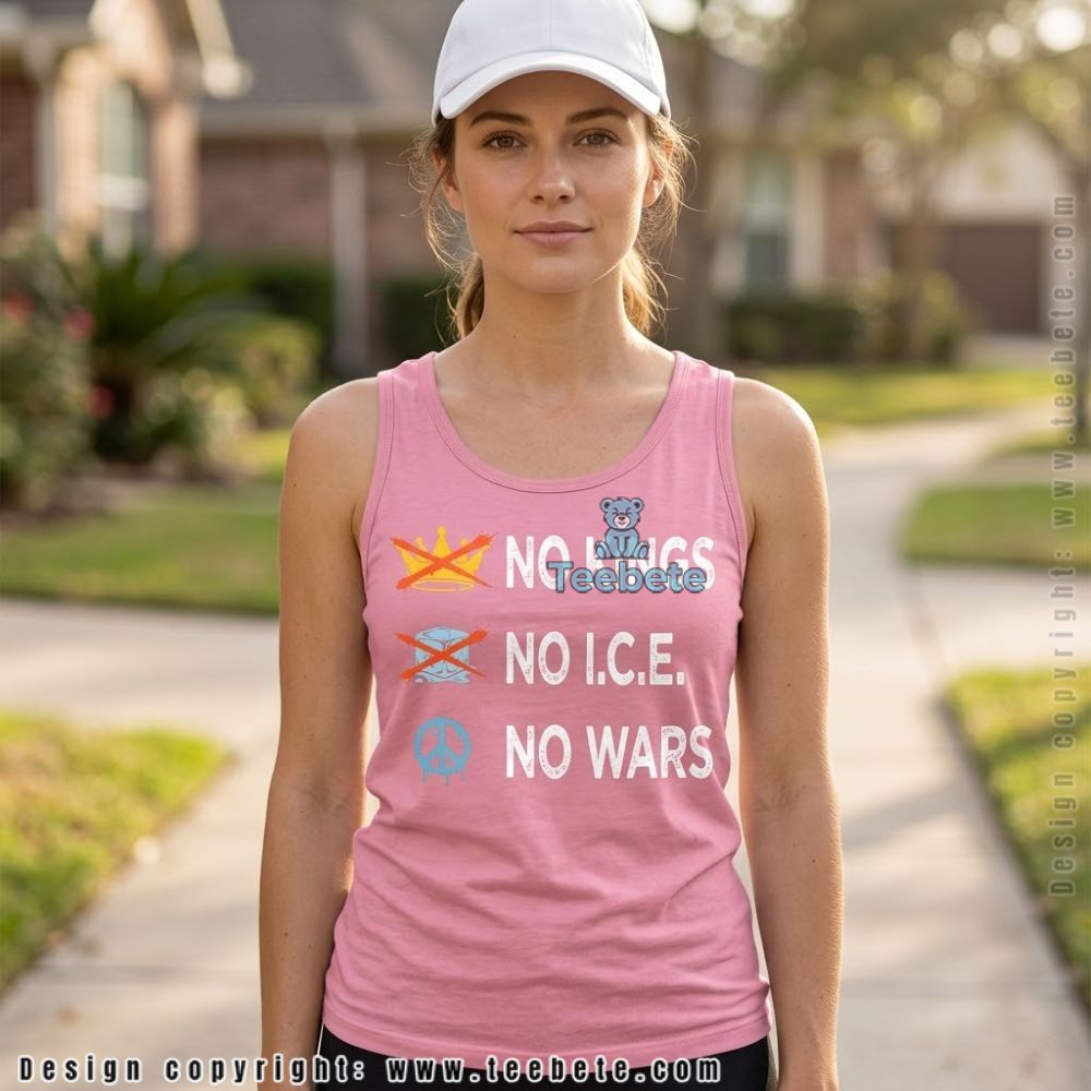 Embodying a fearless aesthetic, the shirt captures the spirit of protest and activism with its edgy visual flair. Inspired by contemporary political movements, this No Kings No ICE No Wars Political Statement T-Shirt is perfect for political rallies or activism events where making a statement is paramount. The effortlessly bold design encourages wearers to express their beliefs while standing out in a crowd. The fusion of modern design techniques with a poignant message ensures it not only stands out but also connects deeply with those who wear it.