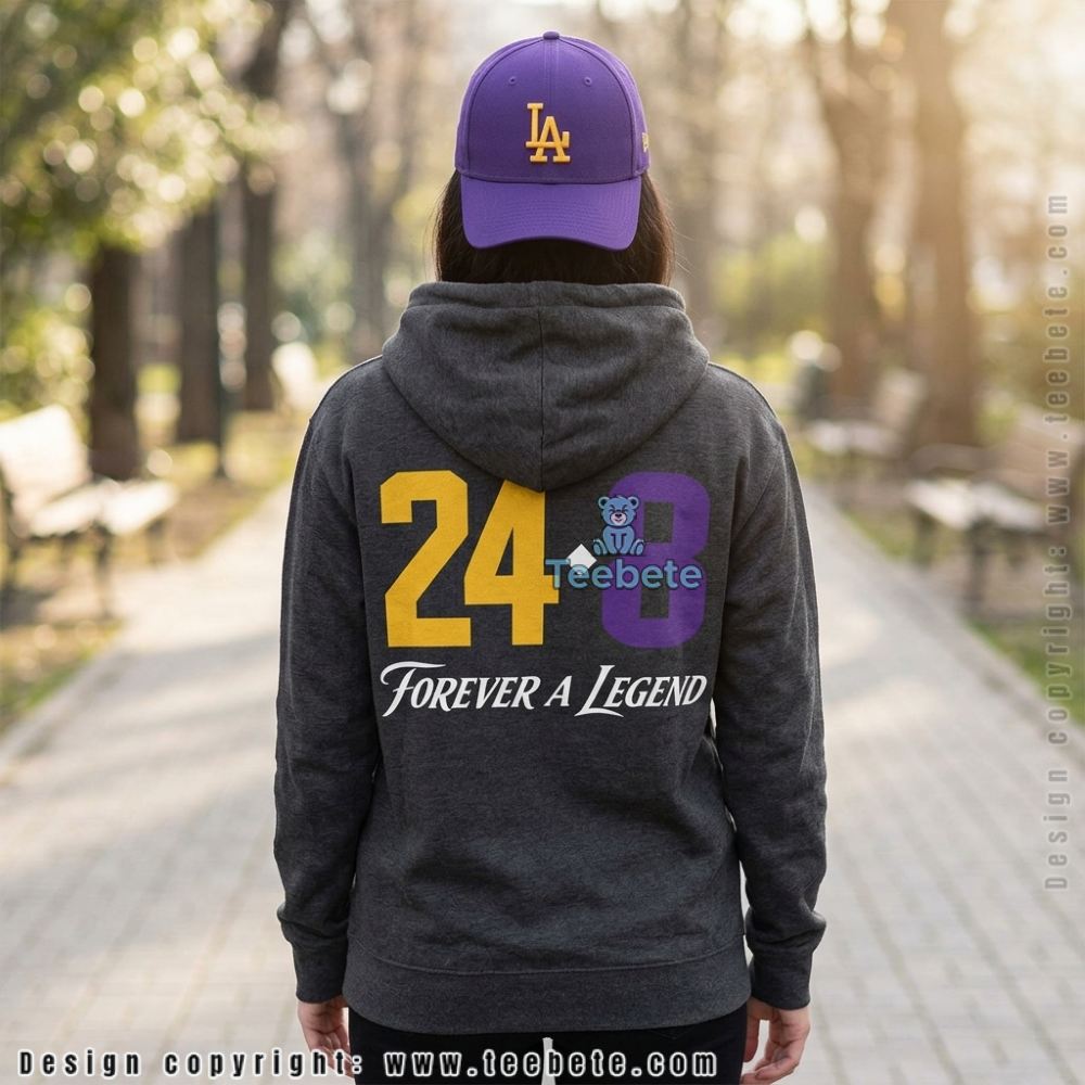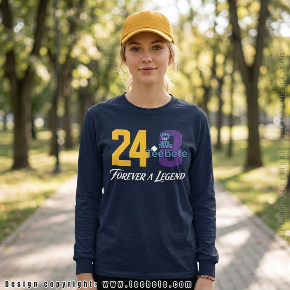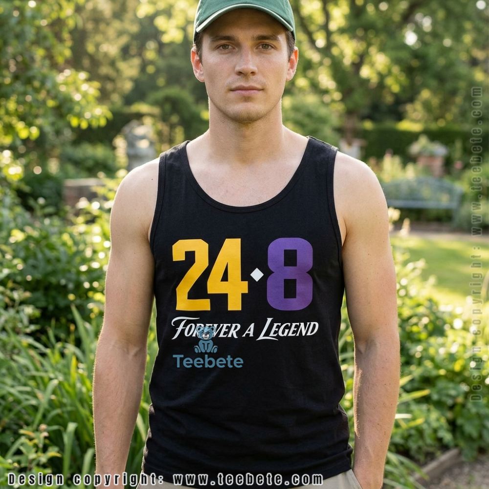 In a dynamic interplay of black and orange, the Number 24 And 8 Black Mamba Memorial Basketball Shirt by Teebete asserts its presence with bold graphics commemorating the legendary player. The shirt’s background is a solid black, allowing the striking orange elements—incorporated numerals juxtaposed with intricate memorial symbols—to command attention. Design density concentrates around the torso area, ensuring that the graphics create a strong visual focal point without overwhelming the shirt’s overall clean silhouette. The contrasting colors not only enhance readability but also establish a rhythmic design flow that guides the eye down the garment.