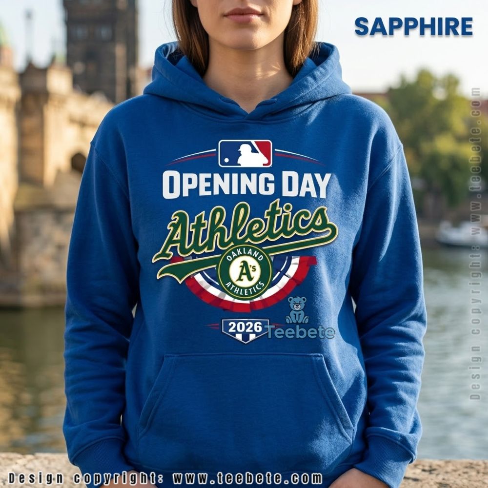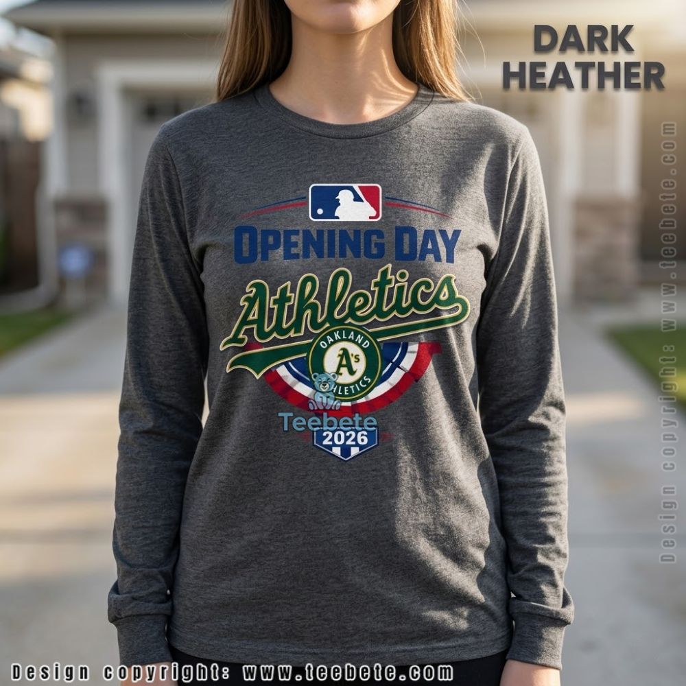 An energetic design bursts forth on this shirt, featuring a striking graphic dedicated to the Oakland Athletics. Bursting with the team’s iconic colors, the “Opening Day 2026 Oakland Athletics Shirt” showcases intricate illustrations that encapsulate the spirit of baseball. Precise typography creates a dynamic focal point, illustrating both the date and team logo in a way that draws the eye. The layout employs a centered graphic composition, making it ideal for fans eager to display their dedication as they step into the new season.