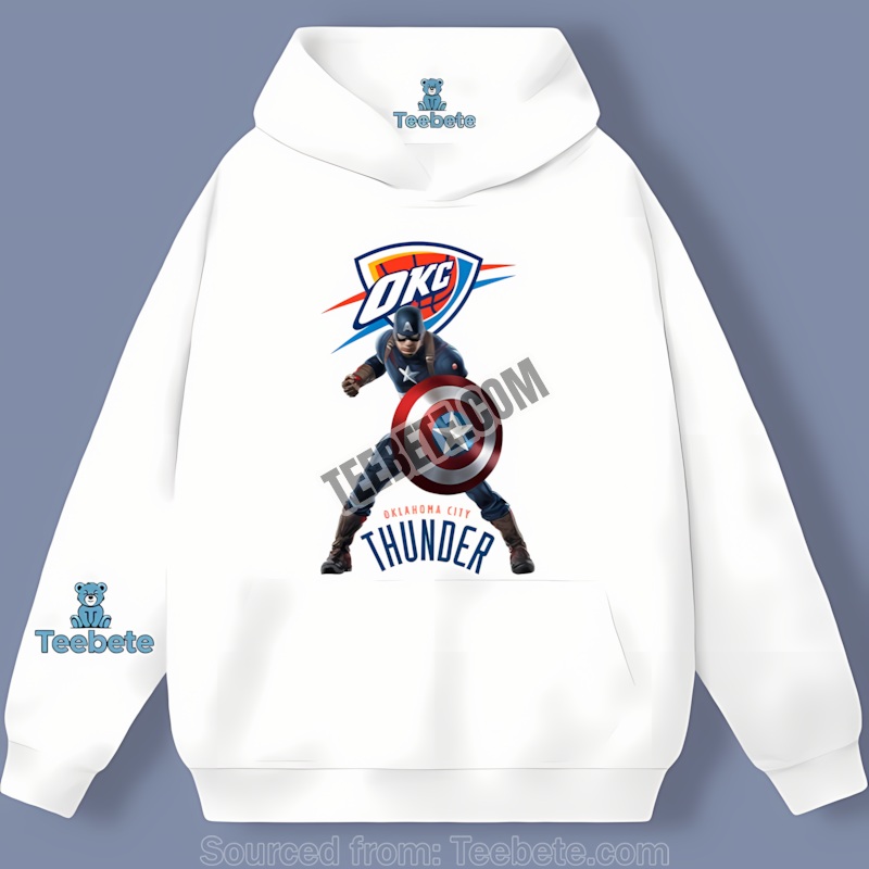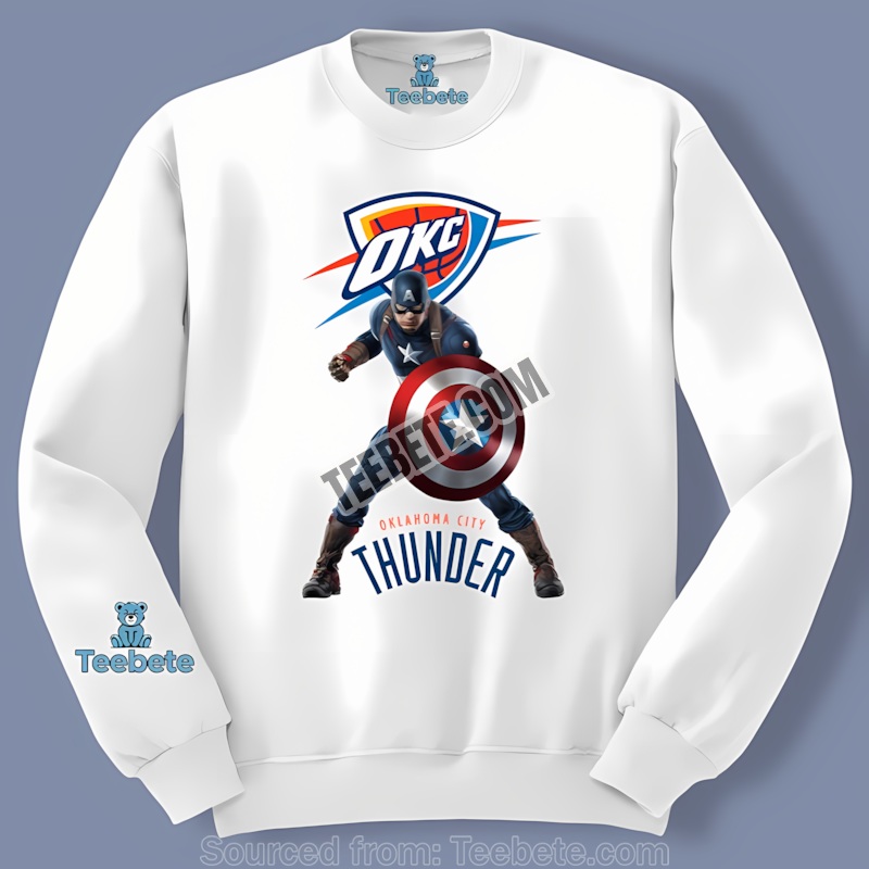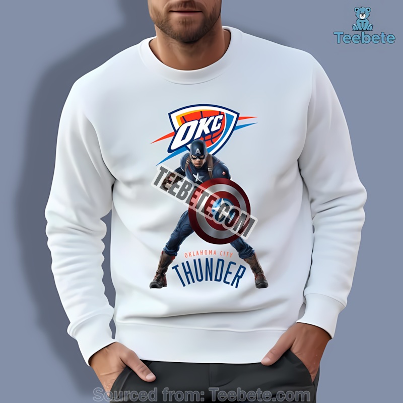 Show your unwavering loyalty with this Oklahoma City Thunder Vs Captain America Avenger Graphic Shirt. Inspired by the electrifying energy of the Thunder and the unwavering strength of Captain America, this design merges two powerful forces. The idea sparked during a late-night brainstorming session – a fusion of basketball’s raw power and Marvel’s iconic heroism, perfectly capturing the spirit of a true fan.