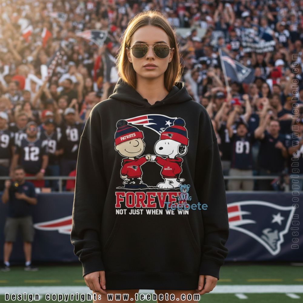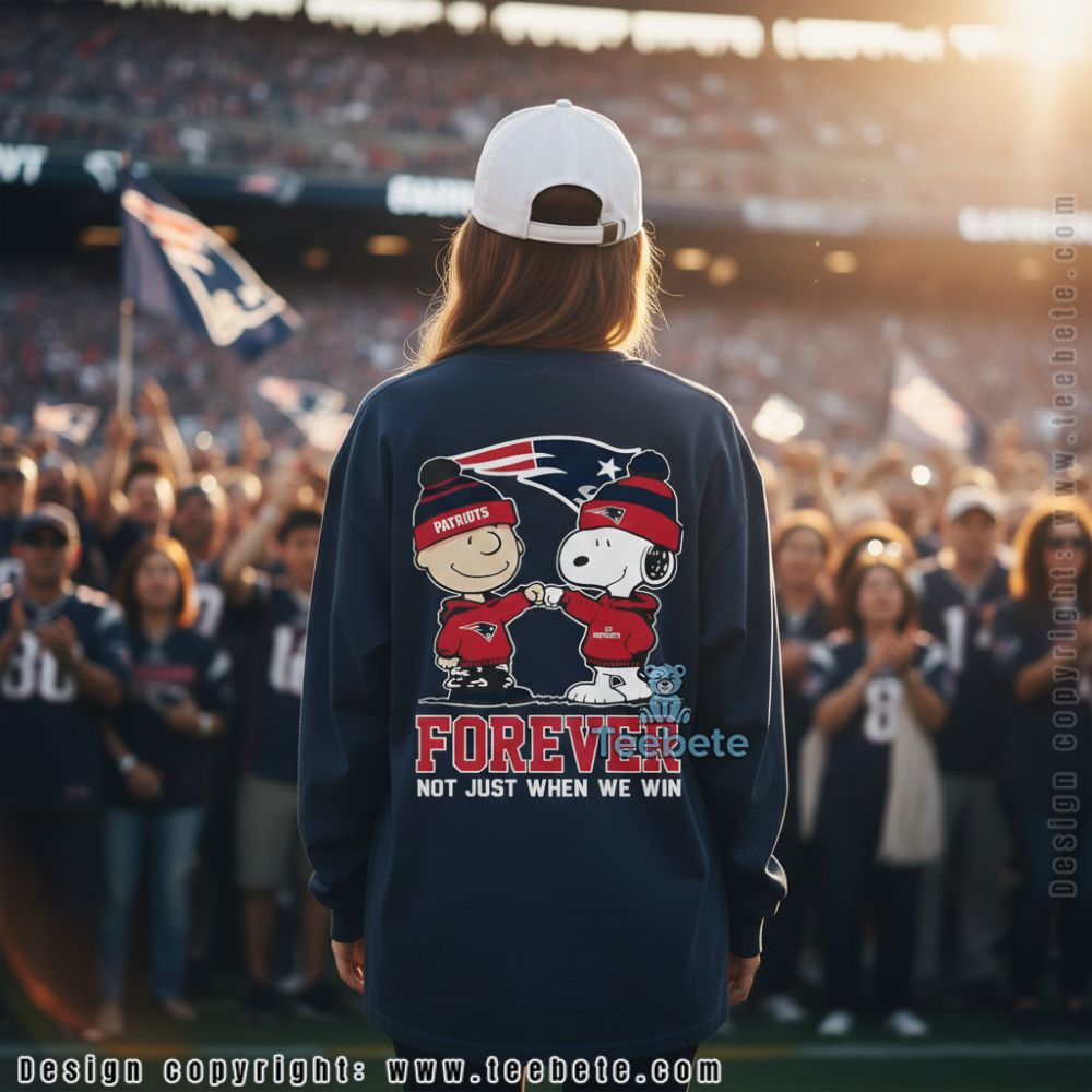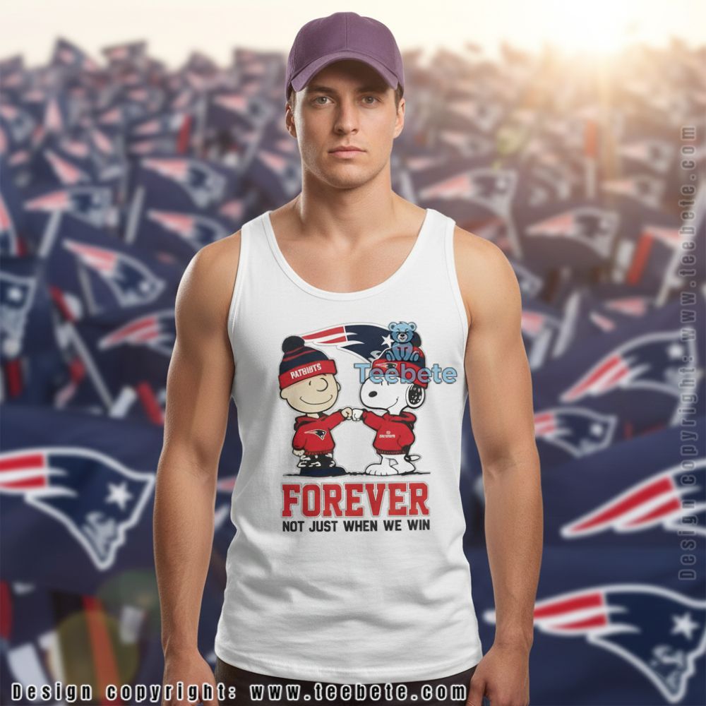 Declare your unwavering loyalty through good times and rebuilding years with the Patriots Charlie Brown Snoopy Forever Not Just When We Win Shirt, a Peanuts crossover celebrating true fans who stick with their team regardless of the scoreboard, now available at Teebete. This heartfelt design is available in multiple styles including a classic Crewneck T-shirt for game days, a warm Hoodie for cold seasons, a comfortable Sweatshirt for casual wear, a V-Neck option for a relaxed fit, Long Sleeve versions for fall weather, and Tank Tops for summer loyalty—each style preserving Charlie Brown and Snoopy’s friendship alongside the Flying Elvis logo with authentic Peanuts charm.
