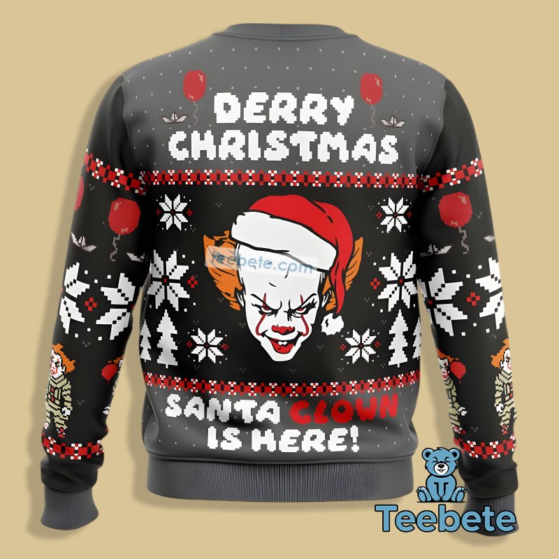 Embrace the festive spirit with the Pennywise Santa Clown Is Here Ugly Christmas Sweater Grey Black. This delightfully quirky design merges the whimsical charm of the holidays with a spooky twist, making it an ideal choice for those who love to stand out. The combination of a classic Santa look with Pennywise’s playful flair creates a unique holiday piece.