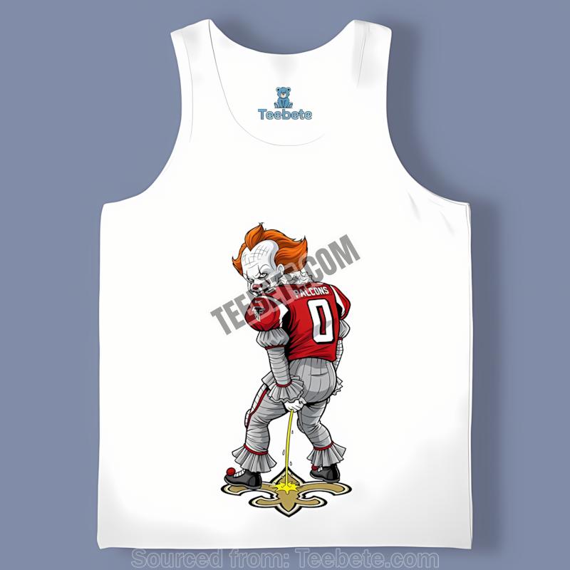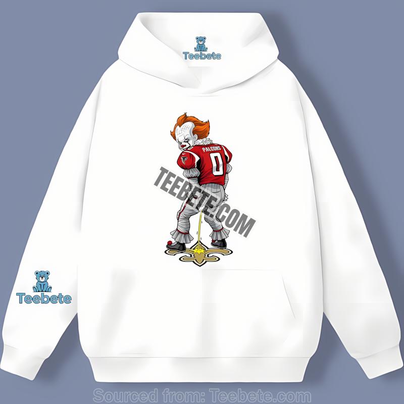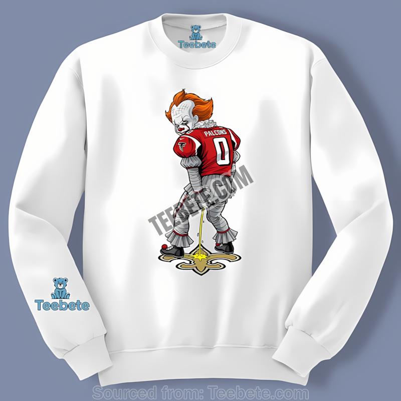 Don’t miss out on this one-of-a-kind design that perfectly marries your love for sports and horror culture. Order your Pennywise Vs Saints Falcons Rivalry Graphic Tshirt today, and let your style speak volumes about your fandom!