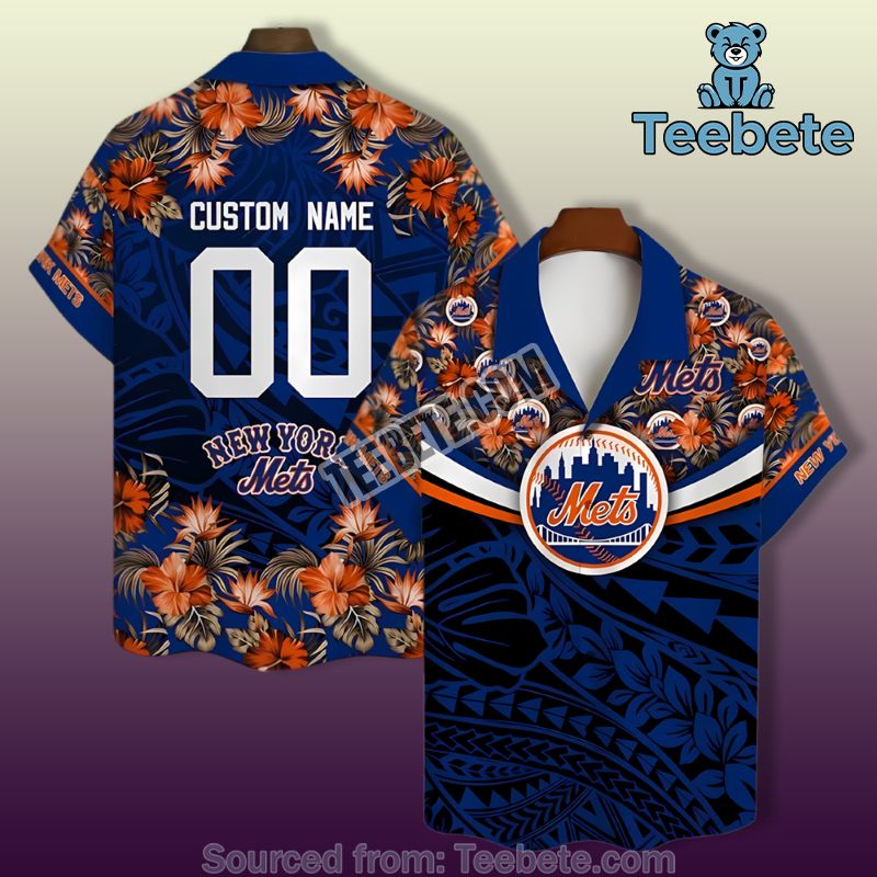 Don’t just wear your team colors; wear your passion. Order your Personalized Blue Tropical New York Mets Hawaiian Button Down from Teebete today!