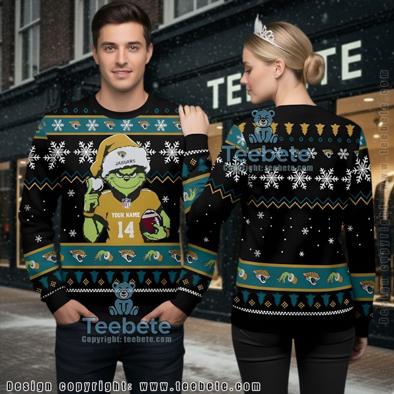 Don’t miss out on making a statement this holiday season. An ideal fan collectible, the Personalized Jacksonville Jaguars Grinch Fans Ugliest Ugly Christmas Sweater Black is a gift that celebrates both your love for the Jaguars and holiday traditions. Show your support and grab this must-have apparel today!