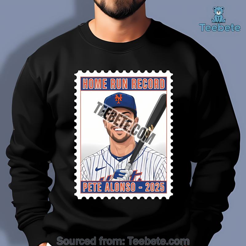 Don’t miss the chance to be a part of this historic moment. Purchase the Pete Alonso Stamp Edition Home Run Record Mets Celebration Shirt now and celebrate your love for the New York Mets with every wear.