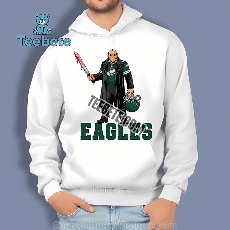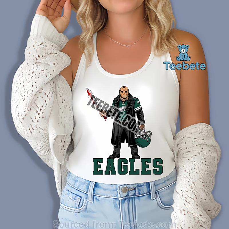 As a part of our exclusive collection of scary Philadelphia Eagles merchandise, this shirt immerses you in the thrilling atmosphere of Halloween while celebrating your team. It’s more than just a shirt; it’s an essential piece of Eagles Jason Voorhees fan shirt that allows you to express your individuality and passion for both football and the horror genre.