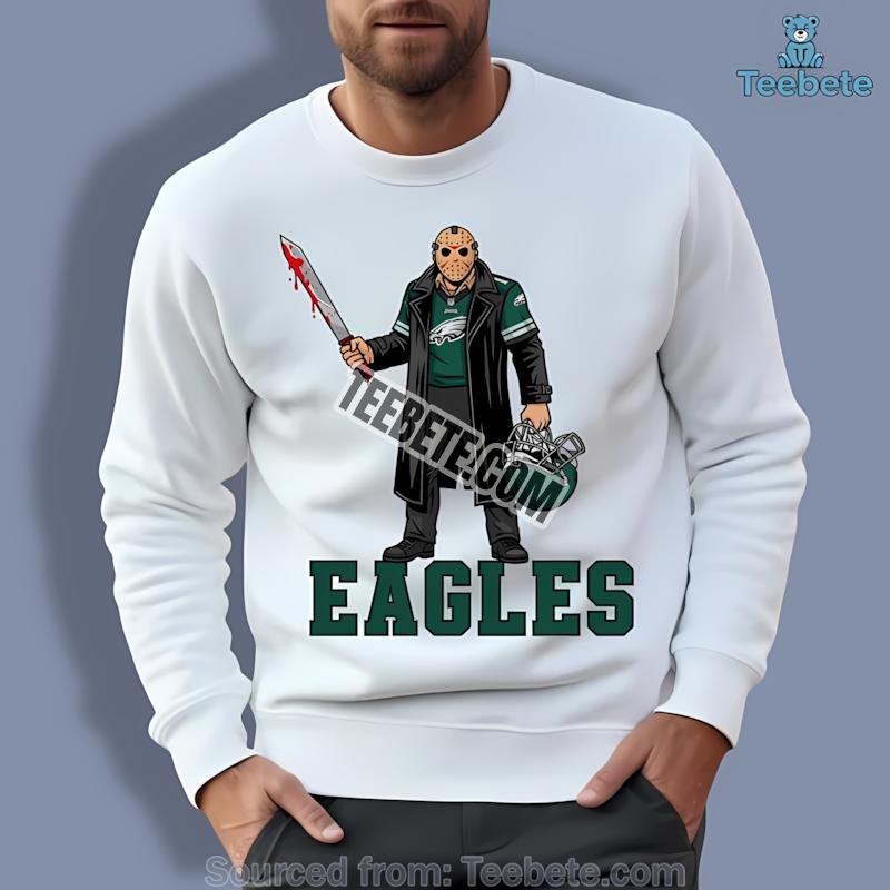 Step into a realm where iconic sports fandom meets the thrilling world of horror with our unique Philadelphia Eagles Jason Voorhees Halloween Shirt. Inspired by the legendary slasher movie “Friday the 13th,” this terrifyingly stylish shirt combines the fierce loyalty of Eagles fans with the chilling allure of Halloween. As the autumn leaves fall and the air turns crisp, sports enthusiasts can seamlessly blend their love of football with a spooky twist. Celebrate the season in a way that showcases your passion for the Philadelphia Eagles while embracing the spirit of Halloween.