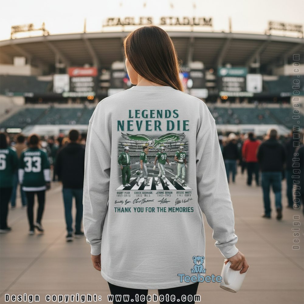 Experience the spirit of fandom with the Philadelphia Eagles Legends Never Die Memorial Shirt. This shirt is not just apparel; it’s a tribute to the unwavering loyalty of Eagles fans who cherish every moment of the game, celebrating legends and memories. The Philadelphia Eagles team shirt serves as a powerful reminder that true passion for the team never fades.