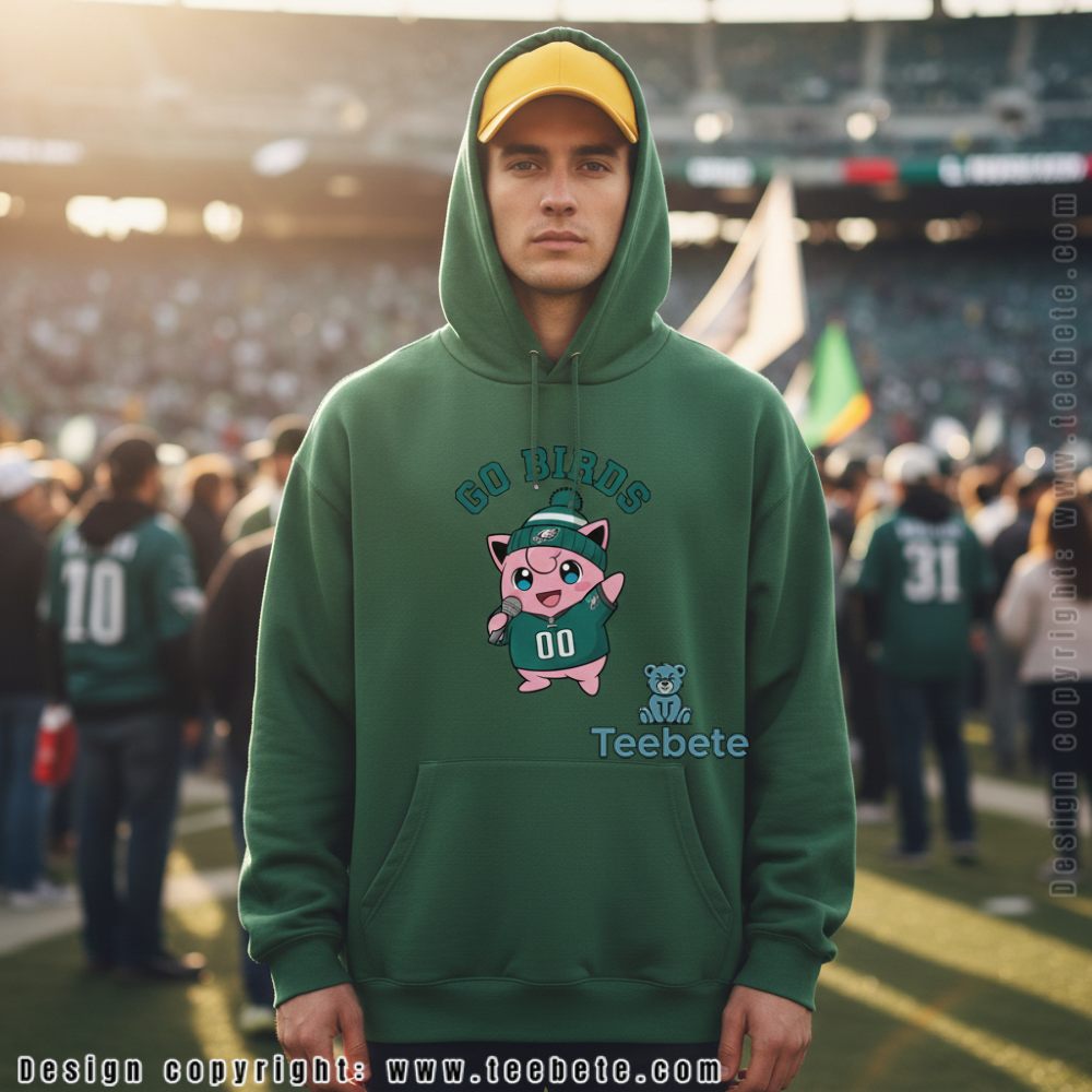Sing the fight song with Pokémon power. Order your Eagles Jigglypuff Game Day shirt today from Teebete and prove wholesome fandom fuels championship spirit—add to cart now!