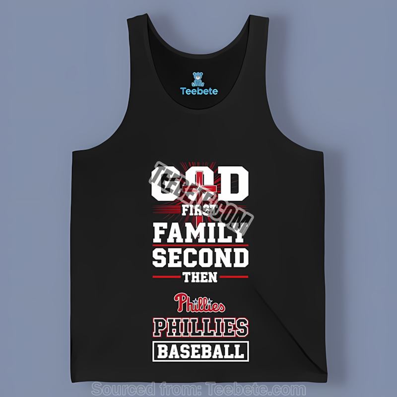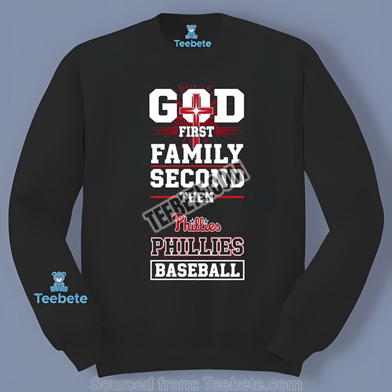 This Philadelphia Phillies God First Family Second Baseball Shirt from Teebete isn’t just apparel; it’s a statement. It’s a visual representation of the unwavering priorities in life for many fans – faith, family, and the unwavering love for the Philadelphia Phillies. The design itself is meant to be a subtle yet powerful reminder of what truly matters, perfectly blending personal values with team pride. The classic design is a tribute to generations of fans who have cherished these values.