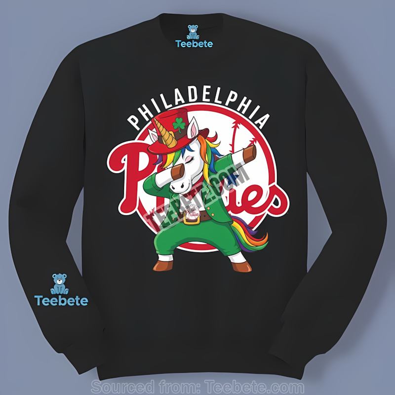 Unleash your inner fan with this vibrant Philadelphia Phillies St Patricks Day Dabbing Unicorn Shirt from Teebete! This isn’t just any Philadelphia Phillies St Patricks Day shirt; it’s a playful fusion of baseball passion, Irish spirit, and whimsical charm, designed to turn heads and spark conversations. We combined the beloved Philadelphia Phillies logo with a magically dabbing unicorn, creating a unique and unforgettable design. It’s the perfect blend of team pride and festive flair for St. Patrick’s Day celebrations.