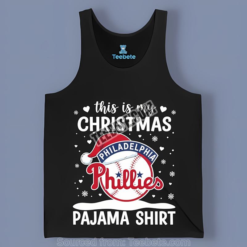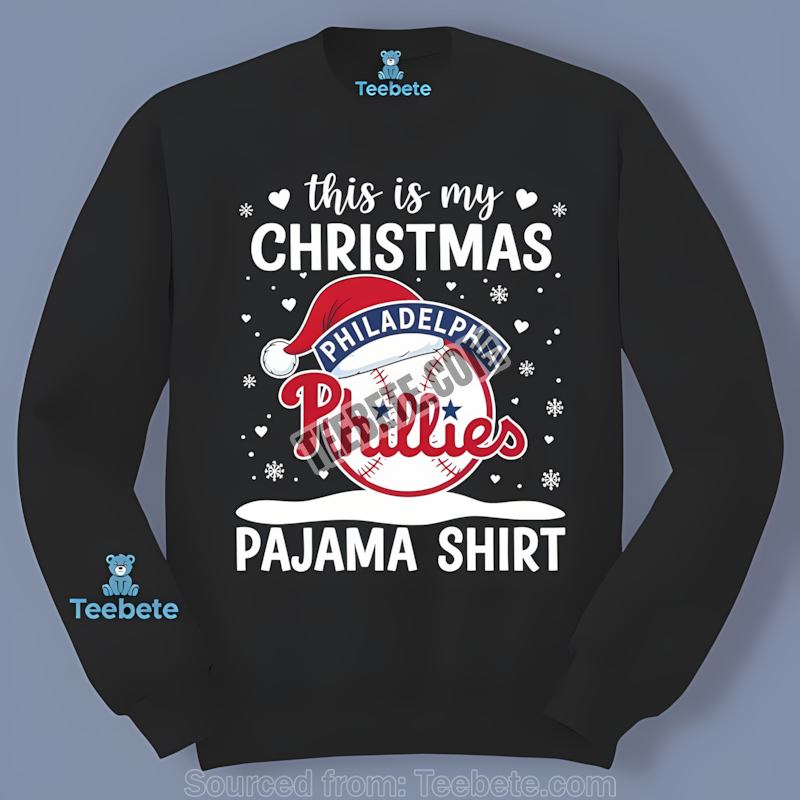 Show your Philadelphia Phillies Christmas pajama shirt pride this holiday season with Teebete’s festive sleepwear tee! This isn’t just any pajama top; it’s a comfortable and stylish way to celebrate your favorite team while snuggling up by the fire. The design itself is inspired by a heartwarming story: our designer, a lifelong Phillies fan, remembers countless Christmas mornings spent opening gifts in his Phillies-themed pajamas. This shirt captures that same cozy, joyful spirit, perfectly blending the festive cheer of Christmas with the unwavering passion of a Phillies fan.