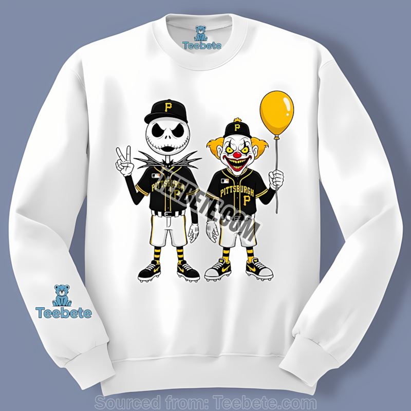 Show your spooky side with unmatched team pride this Halloween with the Teebete Pittsburgh Pirates Halloween Jack Skellington And Pennywise Color Shirt. This unique design blends the thrill of Halloween’s most iconic villains with the unwavering loyalty of a lifelong Pirates fan. It’s the perfect way to celebrate your favorite team while embracing the spirit of the season, a testament to the creative fusion of pop culture and baseball fandom.
