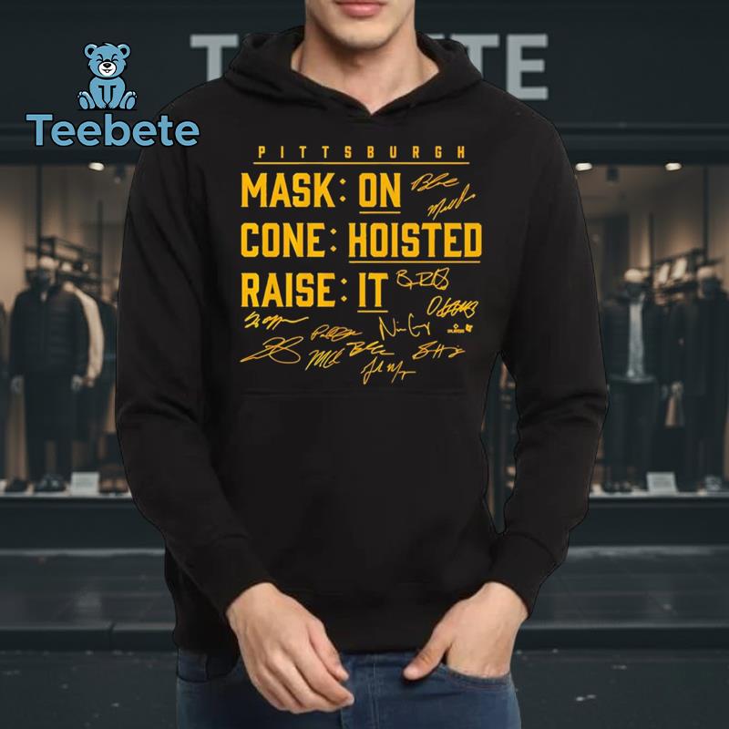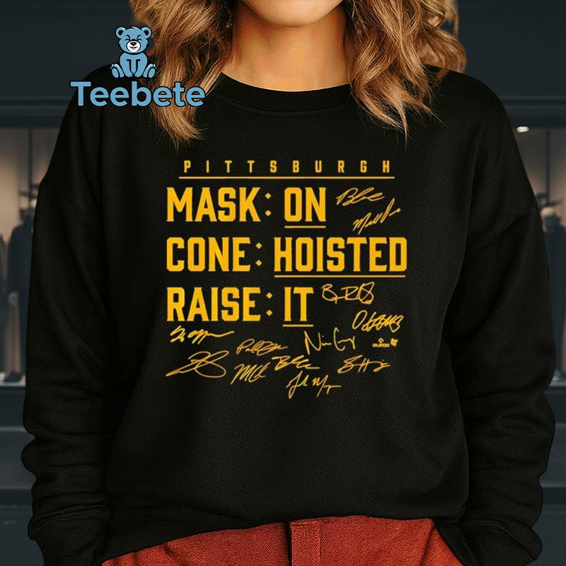 Capturing the essence of game day excitement, this T-Shirt embodies the enthusiastic spirit of baseball gatherings. The overall visual theme leans into a sporty aesthetic, perfect for showcasing at parks, stadiums, or friendly watch parties. Its unique blend of portraits and signatures gives the garment an exclusive look that sets it apart from ordinary fan apparel. Whether standing out in the crowd or enjoying a casual day out, the Mask On Cone Raise It Player Signatures Pittsburgh Pirates T-Shirt serves as a vibrant tribute to the love of the game.