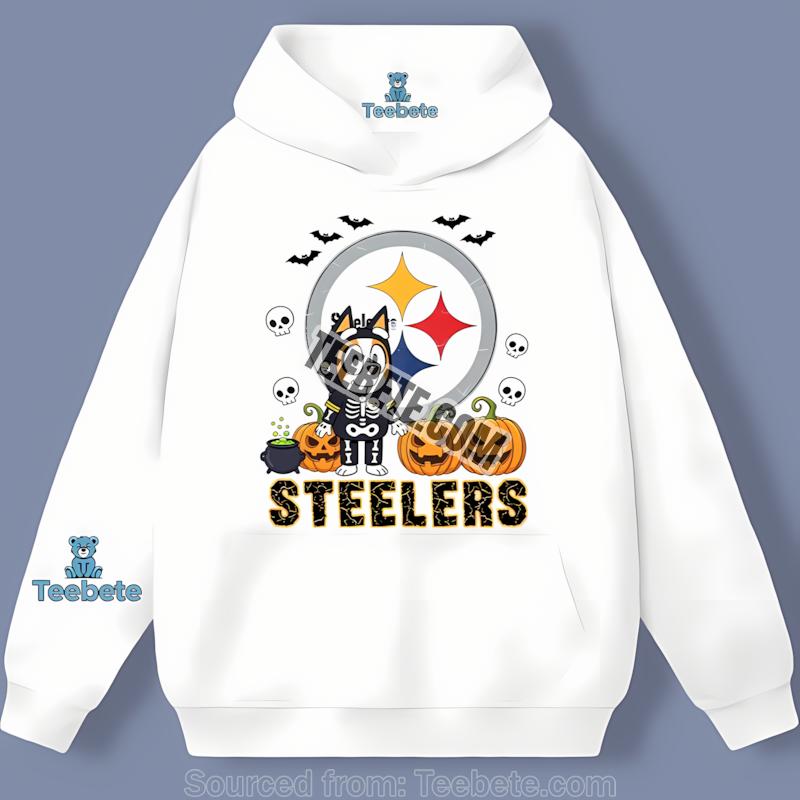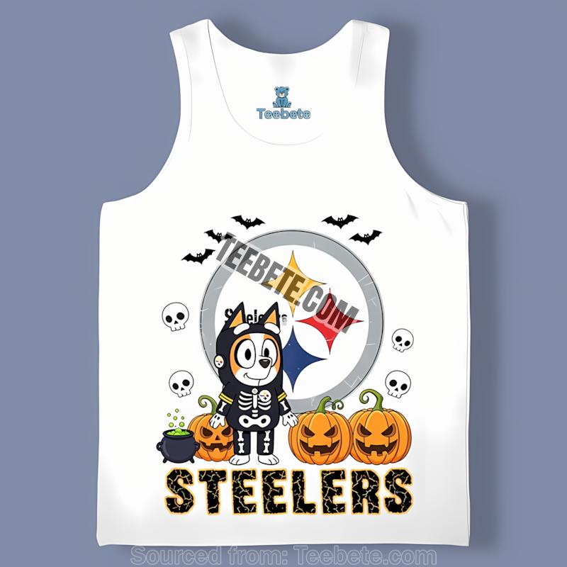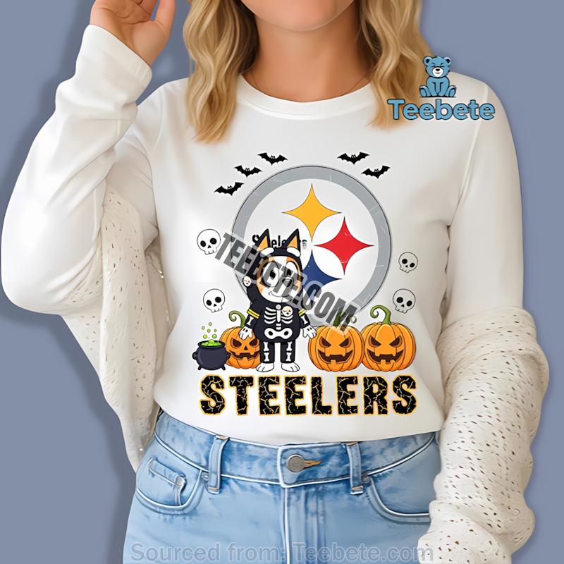 Don’t miss out on the chance to elevate your game day wardrobe—add the Pittsburgh Steelers Bingo Bluey Halloween Skeleton Pumpkin Shirt to your collection today! Purchase this unique piece from Teebete now and celebrate both your love for the NFL and the spirit of Halloween in style!