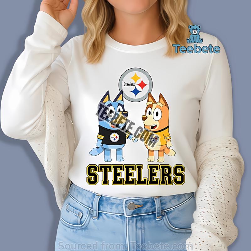 Embrace both your fandom and family with this unique apparel. Whether you’re cheering from the stands or enjoying a cozy day at home, the Pittsburgh Steelers Bluey And Bingo Holding Hands Shirt is perfect for making memories. Elevate your Steelers collection by adding this delightful piece to your wardrobe.