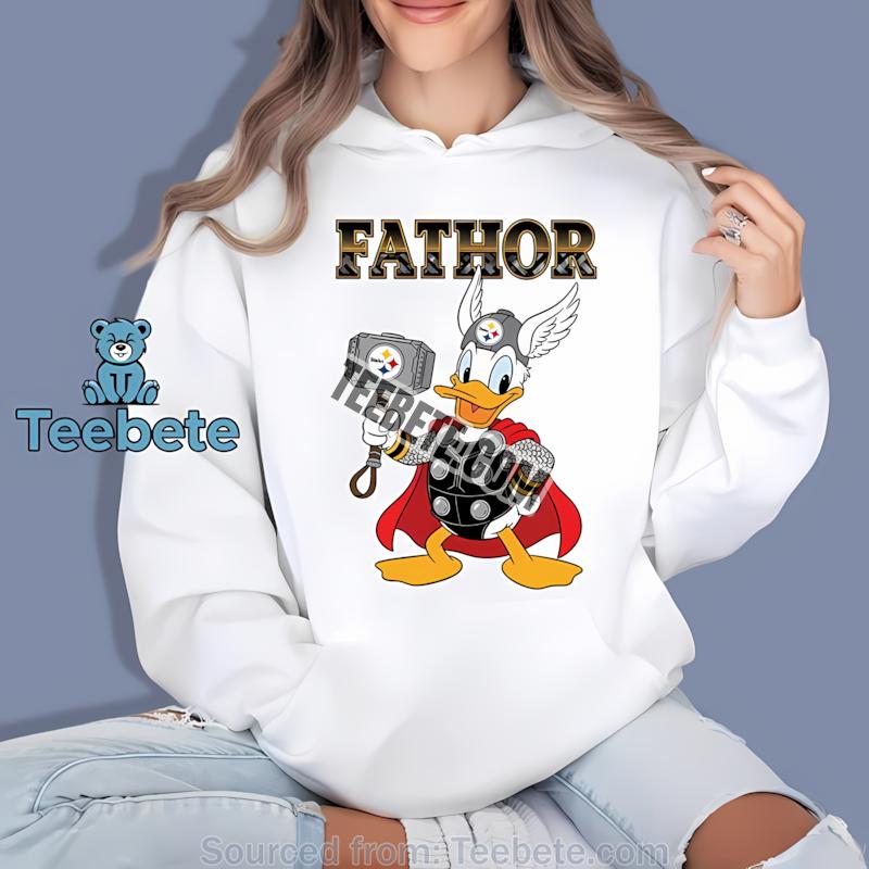The Pittsburgh Steelers Donald Duck Fathor Shirt stands out as a true homage to both the team and the spirit of fatherhood. Historically, this crossover of entertainment and sports has entertained fans for generations, creating memories that span from one generation to the next. Whether it’s during a game day gathering or a casual day out, this shirt embodies those cherished moments, allowing fans to express their allegiance to the Steelers in a humorous and memorable way.