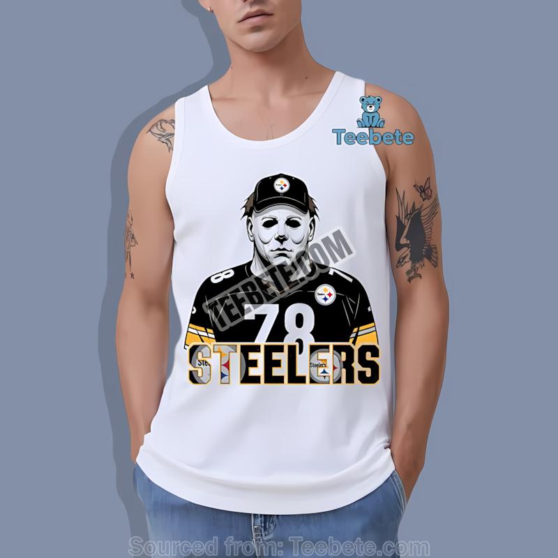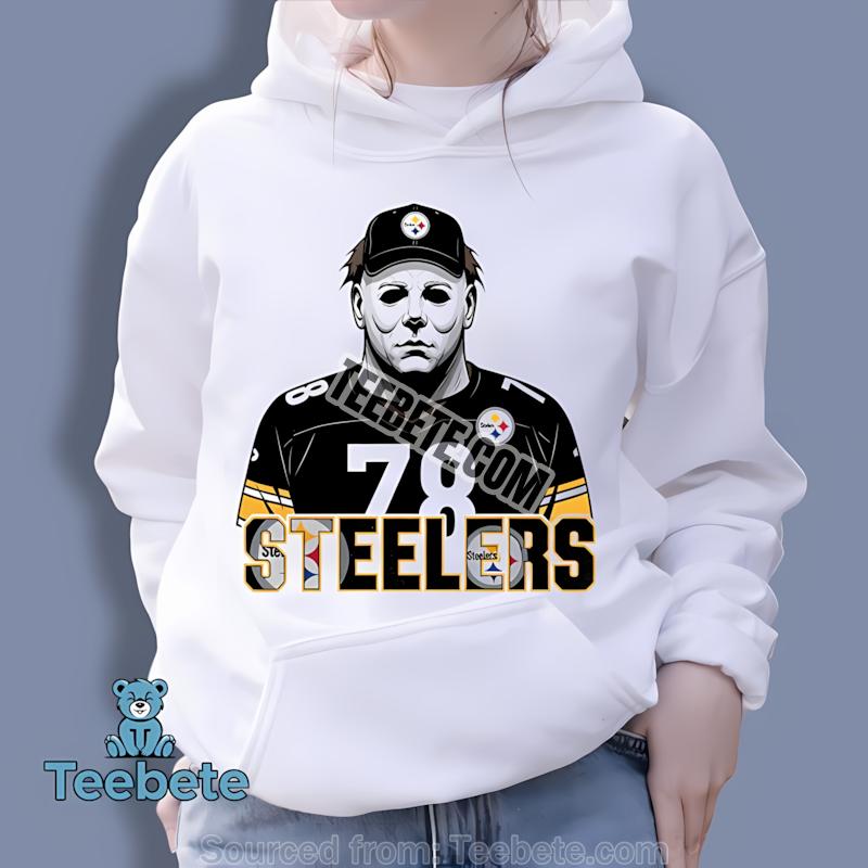 For those who take pride in representing their favorite team while enjoying a nod to legendary horror, this Michael Myers Steelers fan tee fits the bill. It stands out as a piece of Steelers horror movie merchandise that not only celebrates the iconic football franchise but also pays homage to the cinematic universe fans adore. Whether you’re planning to wear it to a game, a Halloween party, or simply out and about, this shirt makes a statement.