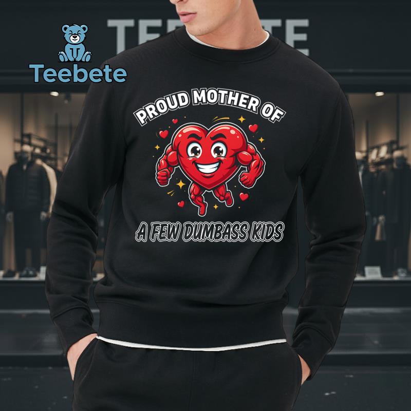 An eye-catching arrangement fills this T-shirt, creating a lively portrayal that will resonate with anyone familiar with motherhood’s challenges. The “Proud Mother Of A Few Dumbass Kids Funny Mom Heart Shirt” features humorous typography, in a playful font that intertwines with heart graphics, exuding charm and cheekiness. A carefully selected color palette of soft pastels contrasts vividly against the fabric, enhancing the sharpness of the text and images. The print employs a full-coverage method, allowing the design to radiate from every angle, ensuring it stands out as a humorous statement piece.