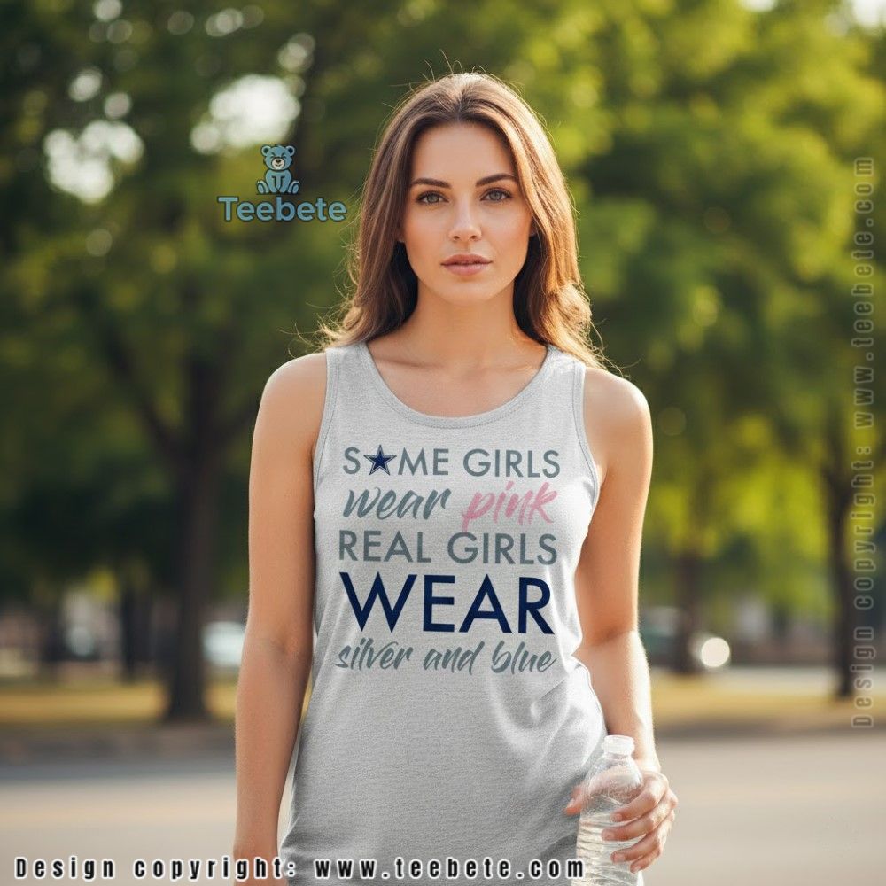 Get ready to show your team spirit with the stunning Real Girls Wear Silver And Blue Cowboys Shirt. This empowering design celebrates the love for the game and resonates with the passionate hearts of fans everywhere. Whether at the stadium or a casual gathering, this shirt makes a statement that combines style with dedication.