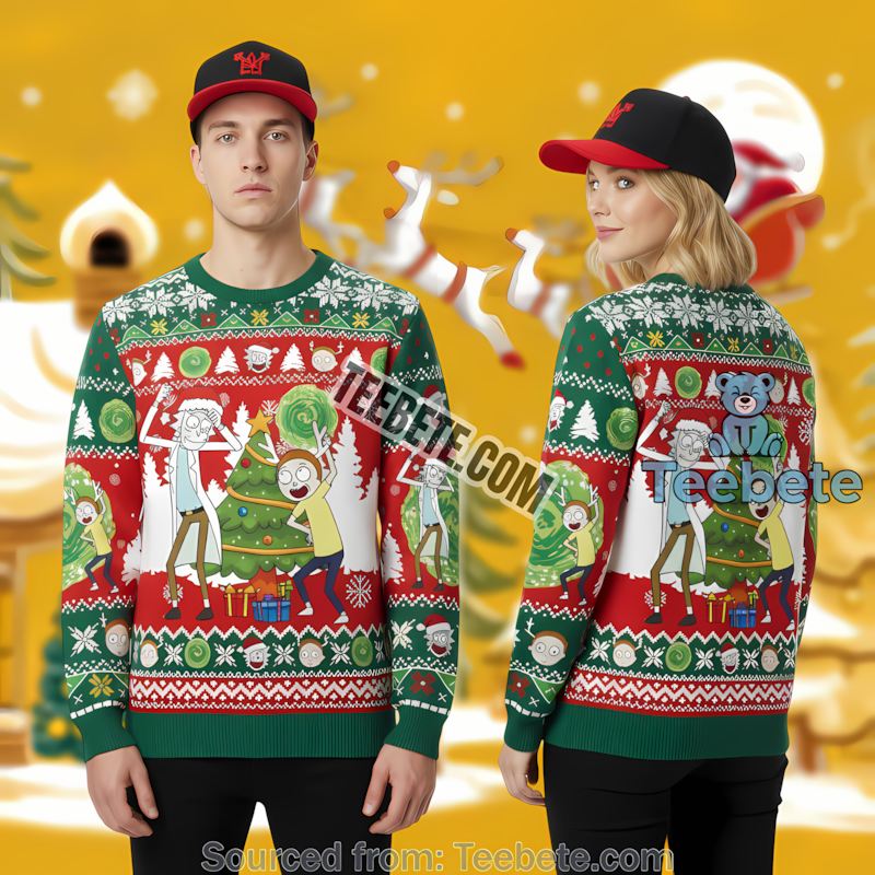 Product information "Rick And Morty Christmas Tree Ugly Christmas Sweater Red Green Mens"