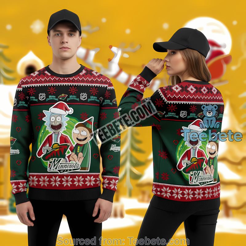 The inspiration behind this design comes from the enduring popularity of Rick and Morty. The series has captured the hearts of viewers worldwide, and the Minnesota Wild fanbase only adds to its cultural significance. This sweater draws upon the show’s endearing humor and adventurous spirit, making it an essential collectible for enthusiasts eager to embrace their fandom in style.